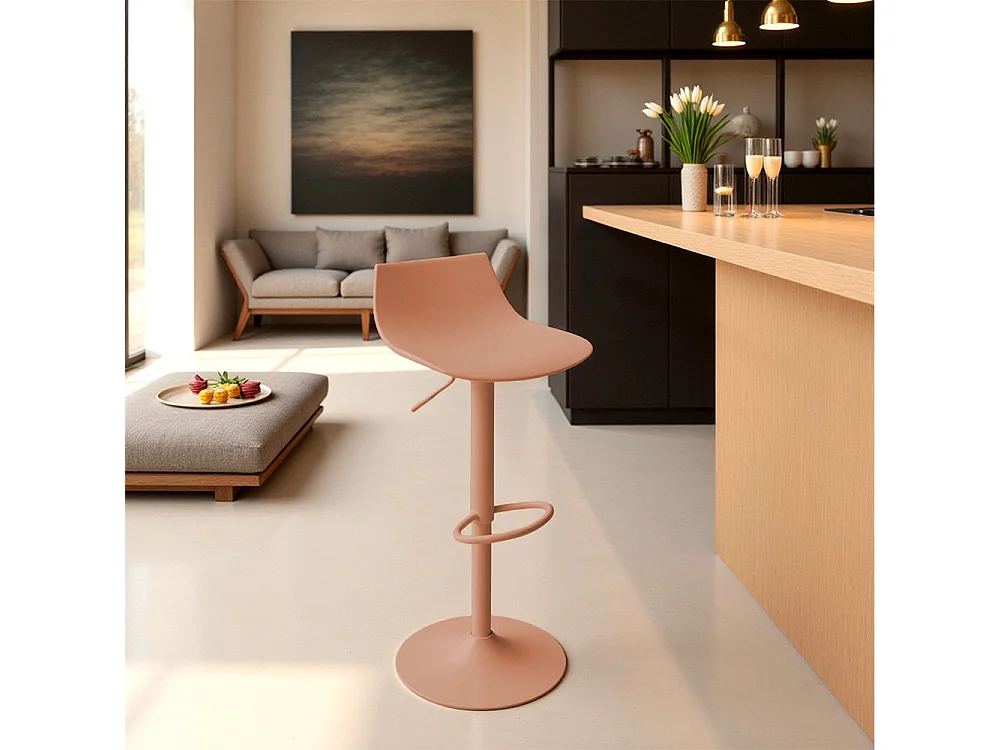 Heribo - Lot de 2 chaises de bar réglables en plastique et métal H58-79cm - Terracotta