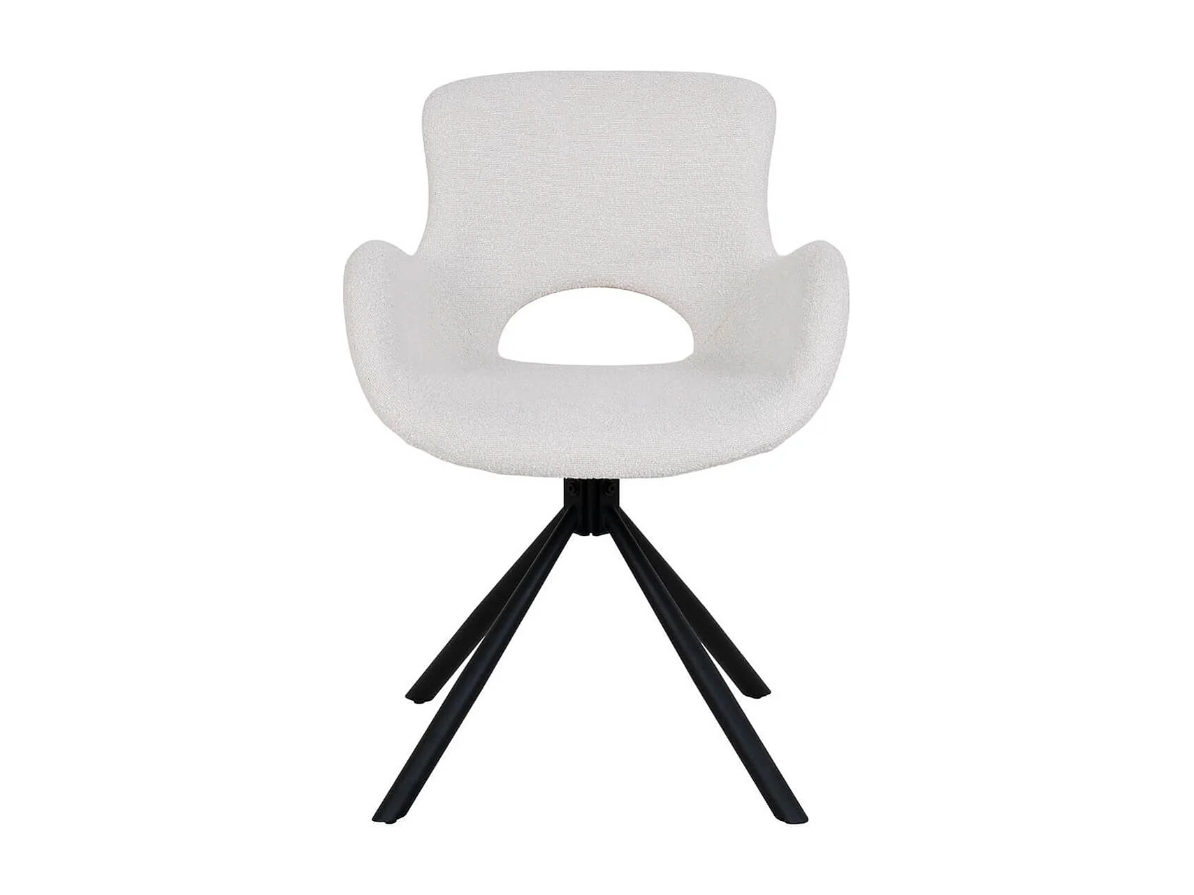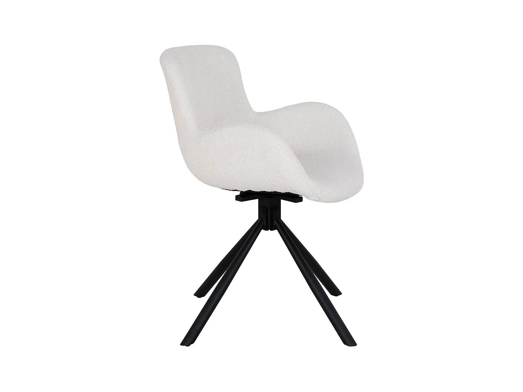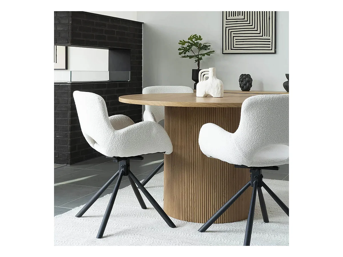 HERMOS - Lot de 4 Fauteuils de Table Tissu Bouclé Blanc Pied Pivotant Métal Noir
