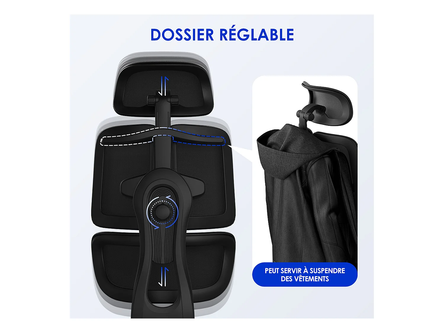 Hiazurm chaise de bureau ergonomique avec appuie-tête et accoudoirs réglables en hauteur – fauteuil de bureau confortable pour le travail à domicile