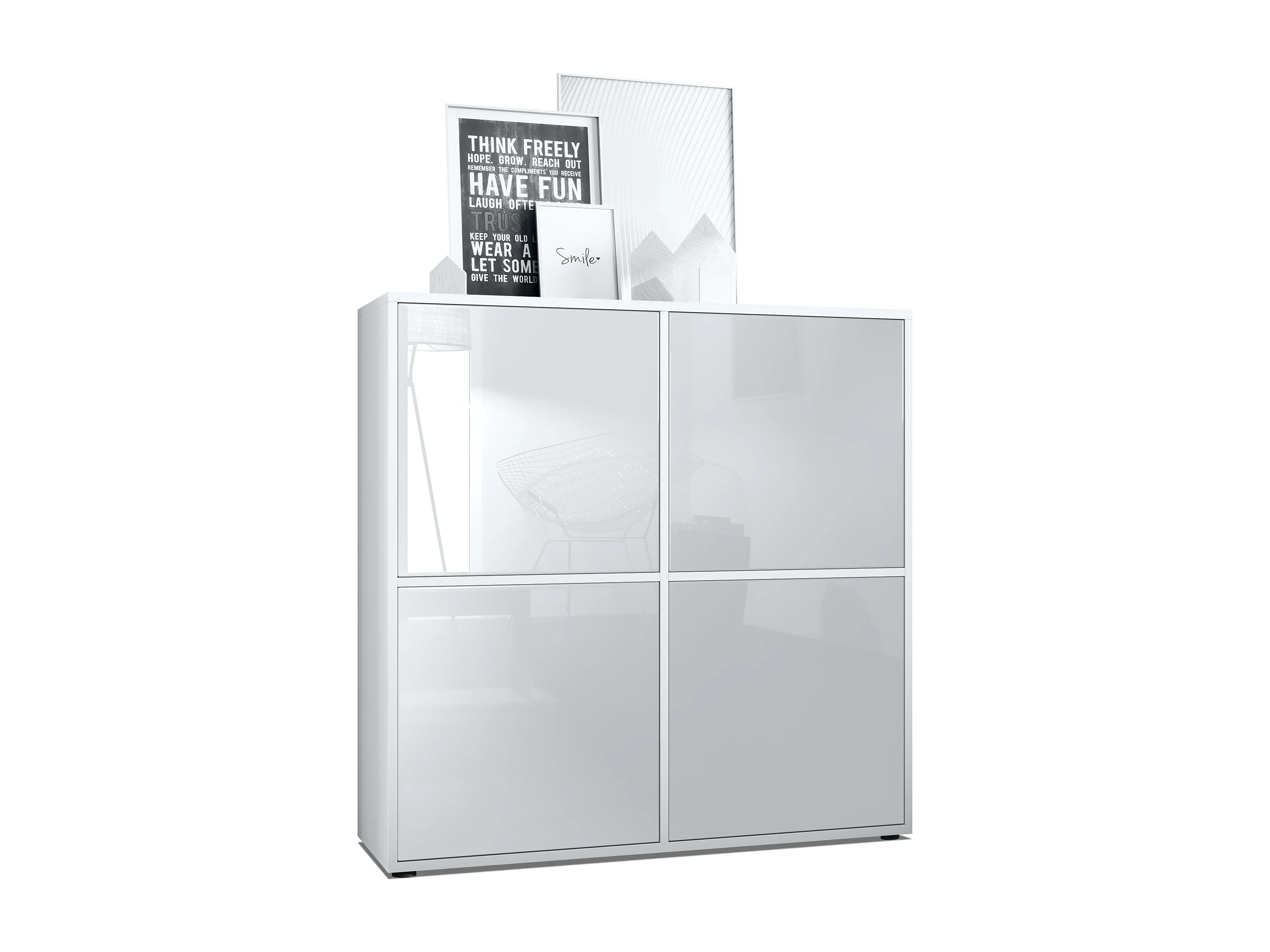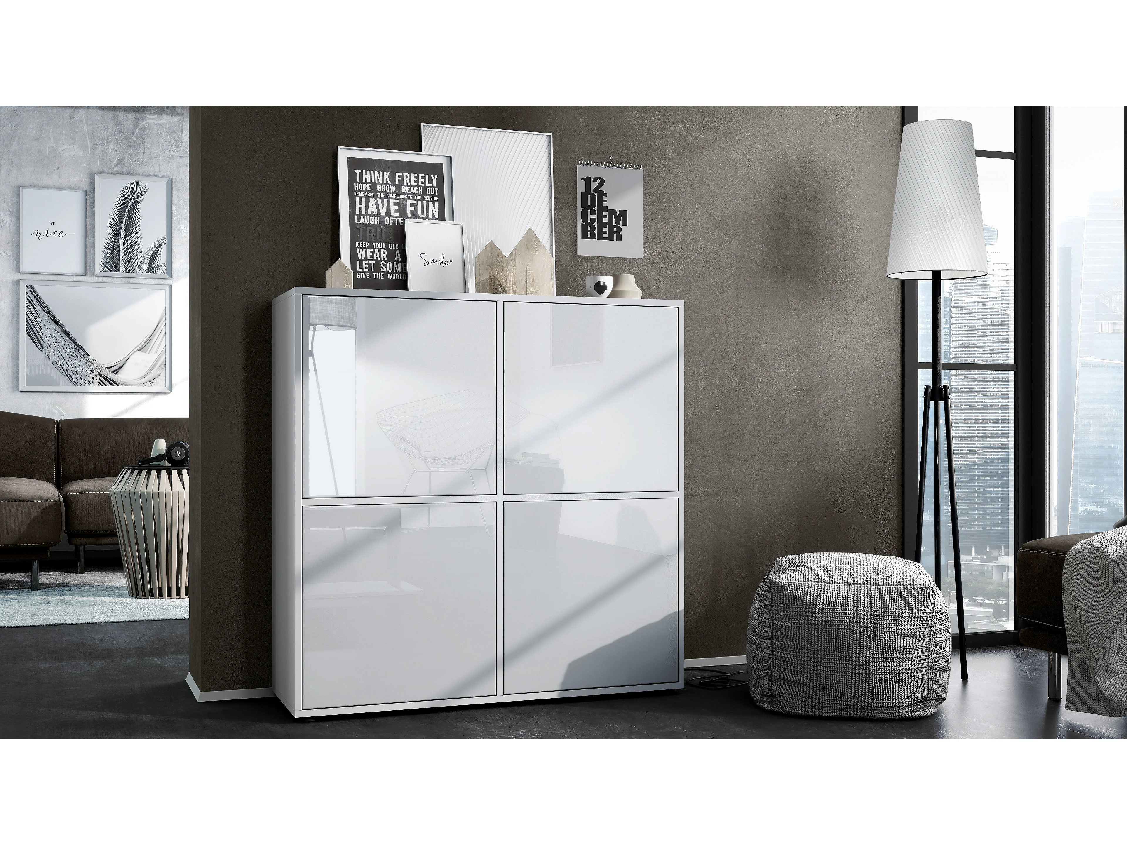 Highboard Cuba V2 Placard 104 x 105,5 x 35,5 cm Buffet à 8 compartiments, caisson en blanc mat / façades en Blanc laqué haute brillance