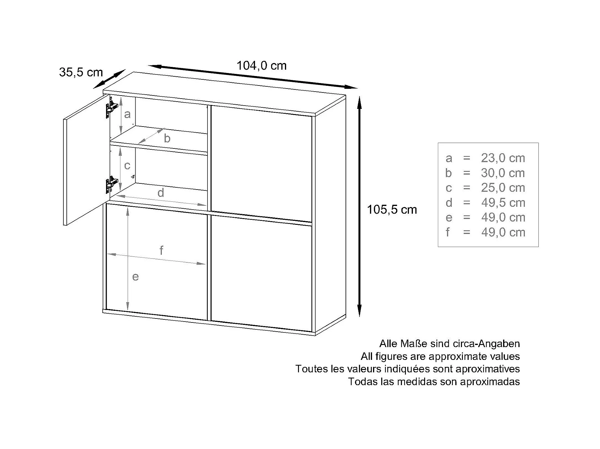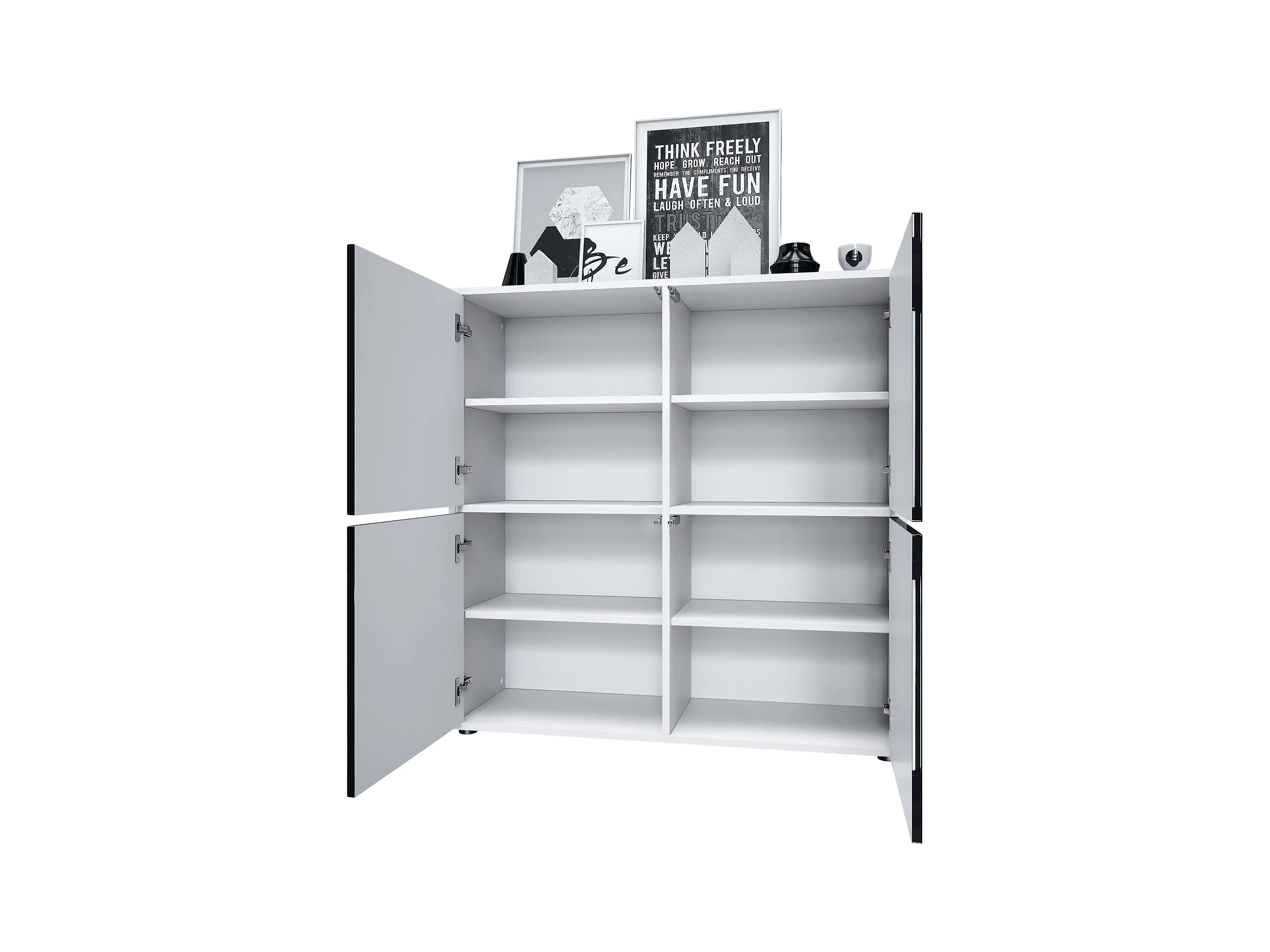 Highboard Cuba V2 Placard 104 x 105,5 x 35,5 cm Buffet à 8 compartiments, caisson en blanc mat / façades en Blanc mat