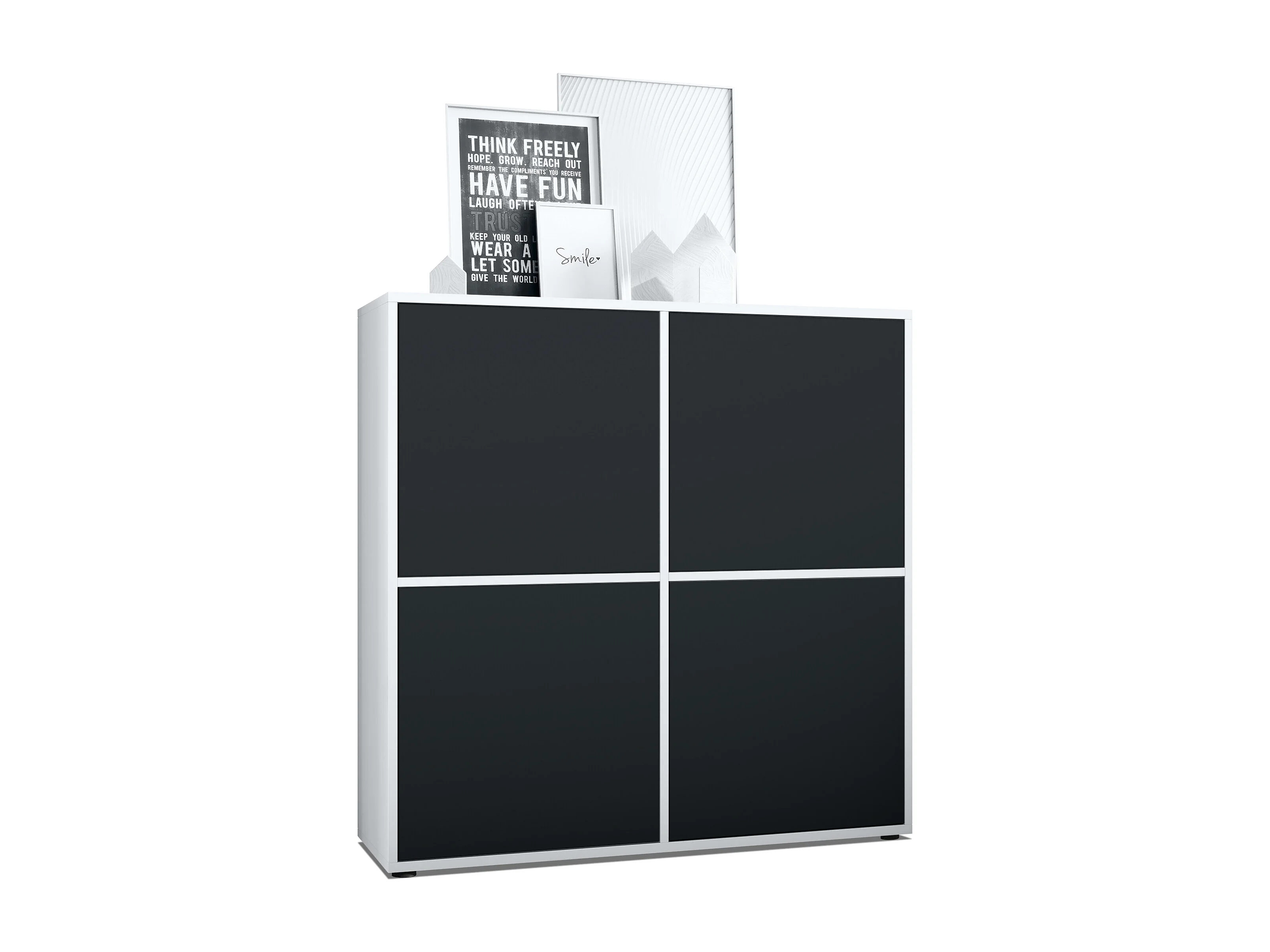 Highboard Cuba V2 Placard 104 x 105,5 x 35,5 cm Buffet à 8 compartiments, caisson en blanc mat / façades en Noir mat