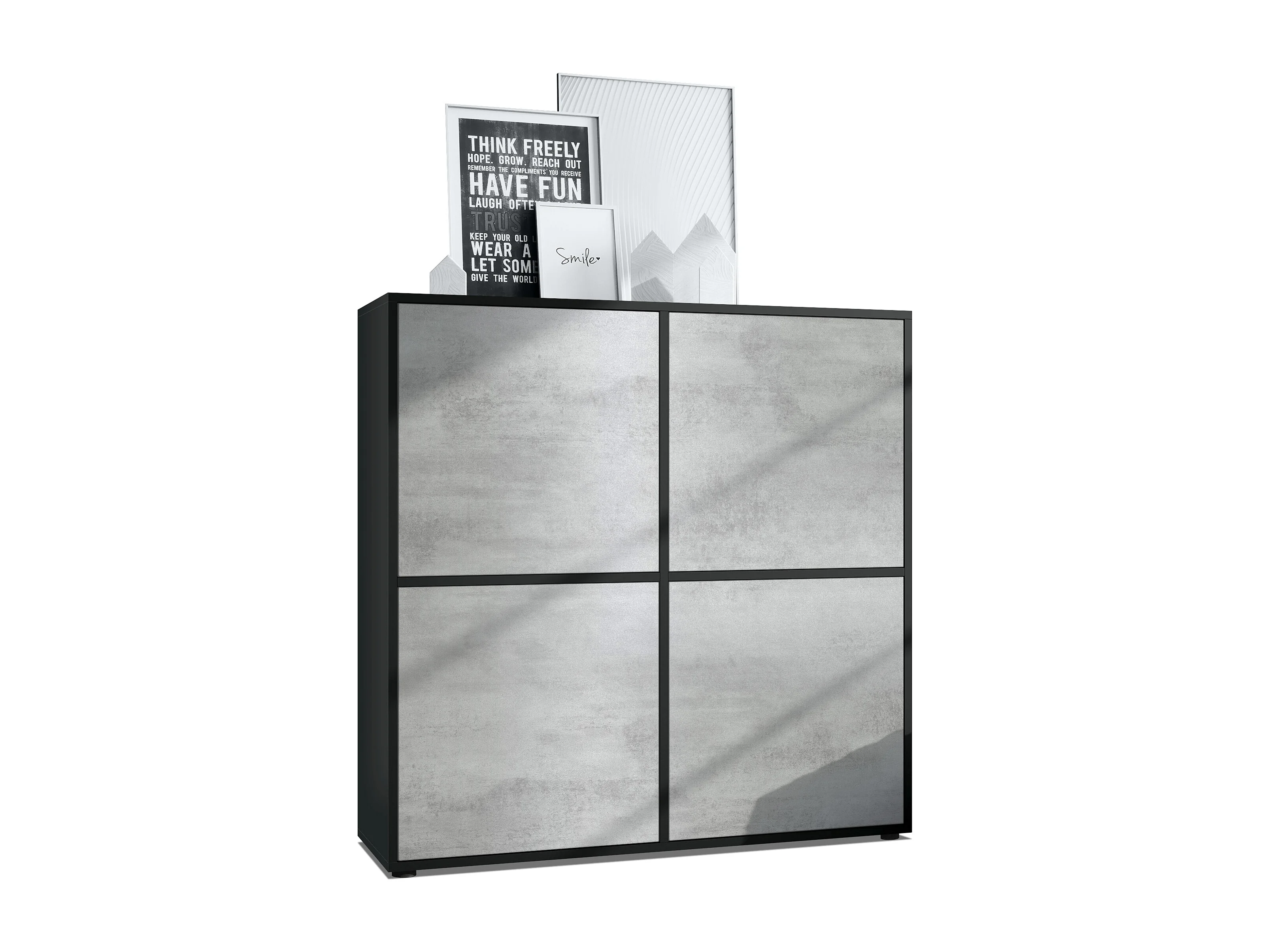 Highboard Cuba V2 Placard 104 x 105,5 x 35,5 cm Buffet à 8 compartiments, caisson en noir mat / façades en Aspect Béton Oxyde