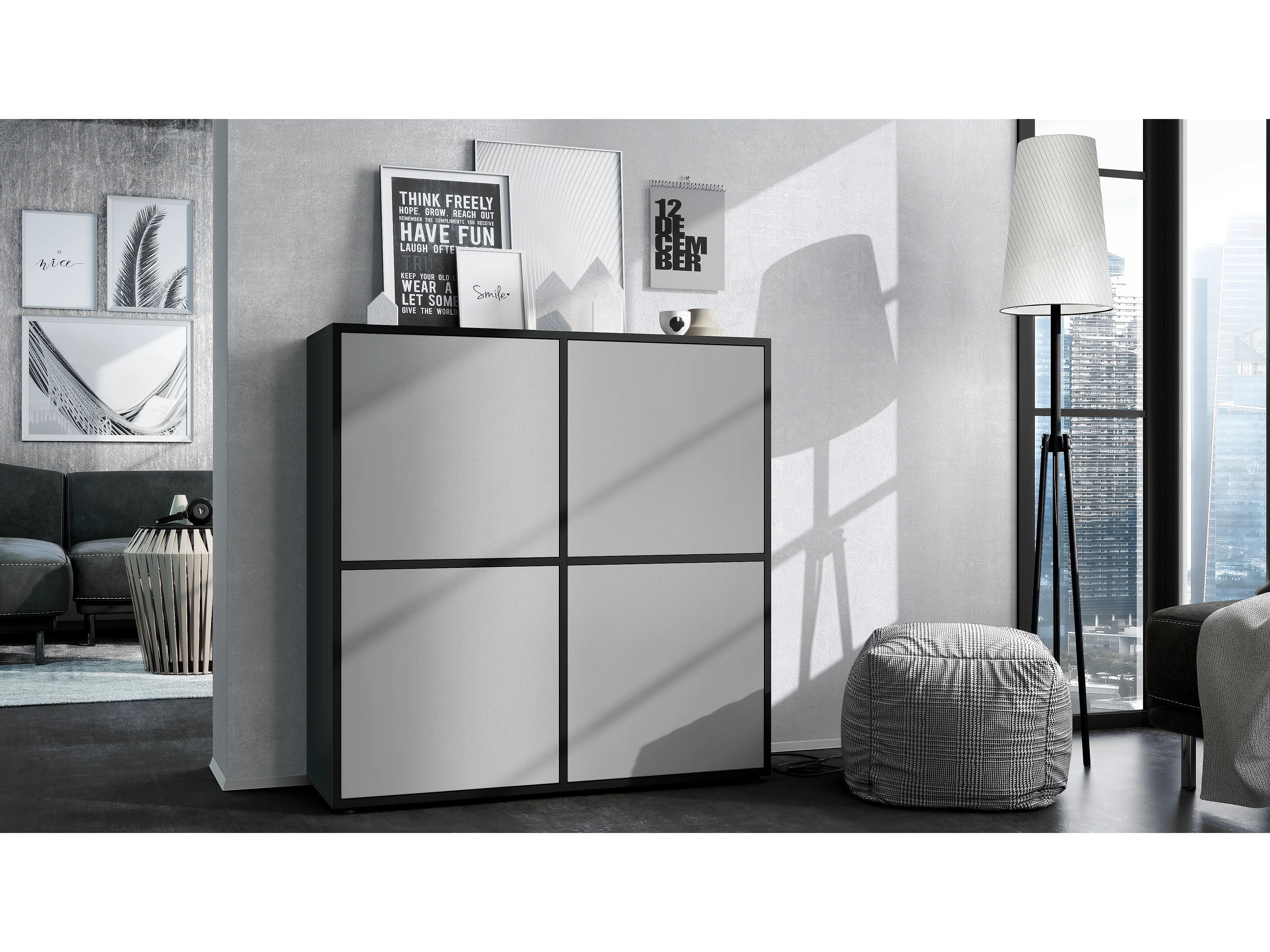 Highboard Cuba V2 Placard 104 x 105,5 x 35,5 cm Buffet à 8 compartiments, caisson en noir mat / façades en Gris clair satiné mat