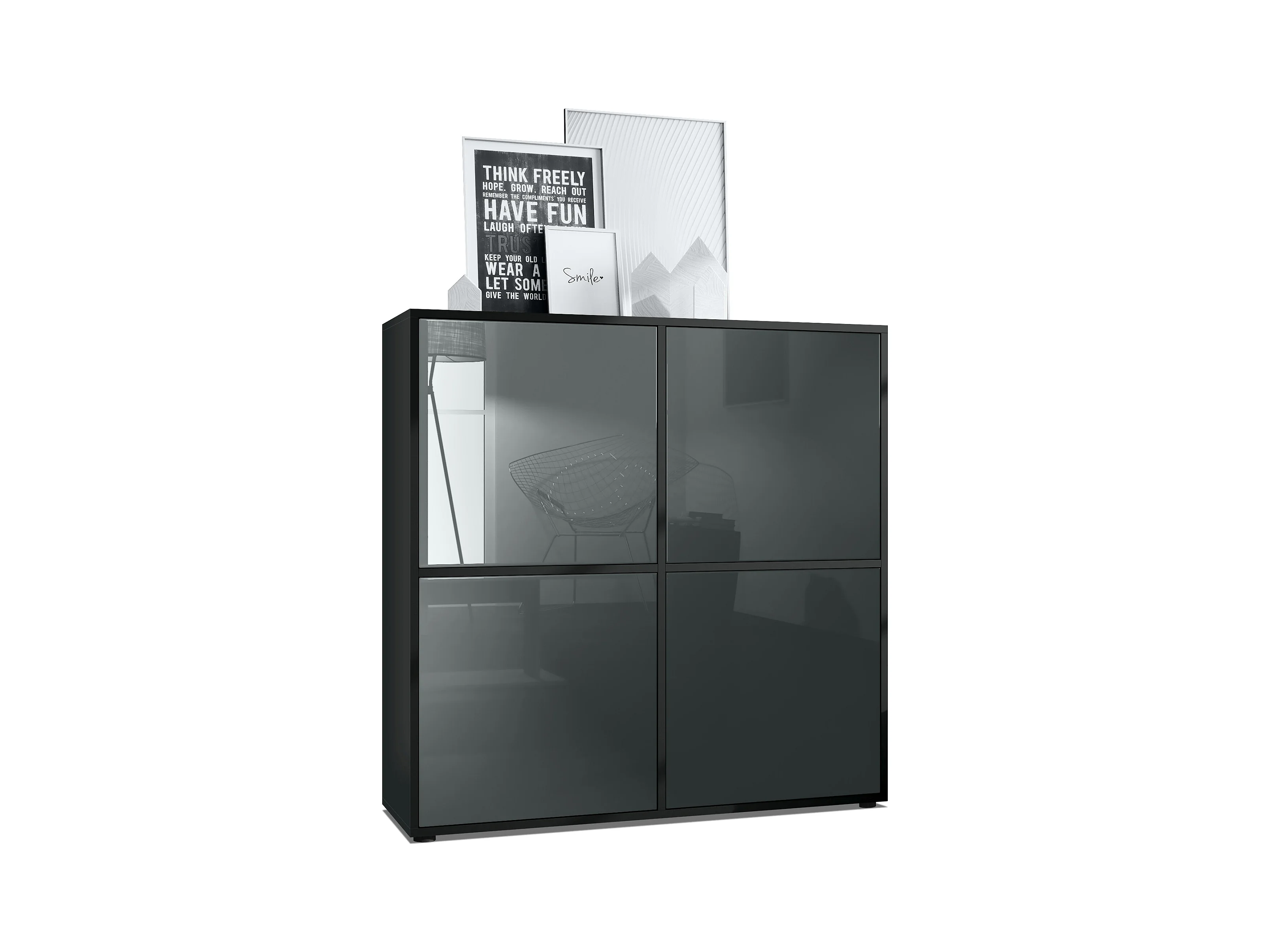 Highboard Cuba V2 Placard 104 x 105,5 x 35,5 cm Buffet à 8 compartiments, caisson en noir mat / façades en Gris laqué haute brillance