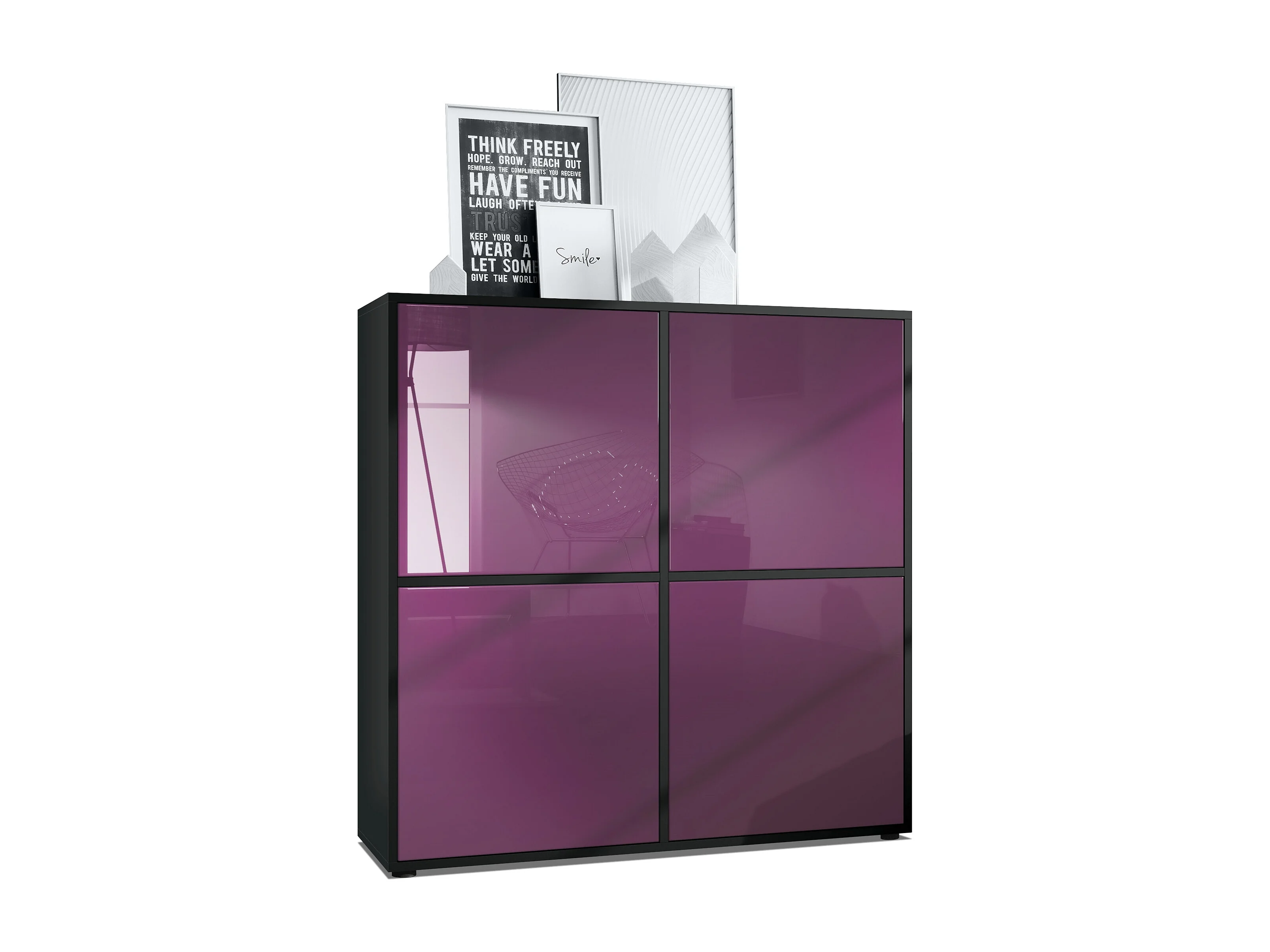 Highboard Cuba V2 Placard 104 x 105,5 x 35,5 cm Buffet à 8 compartiments, caisson en noir mat / façades en Mûre laqué haute brillance