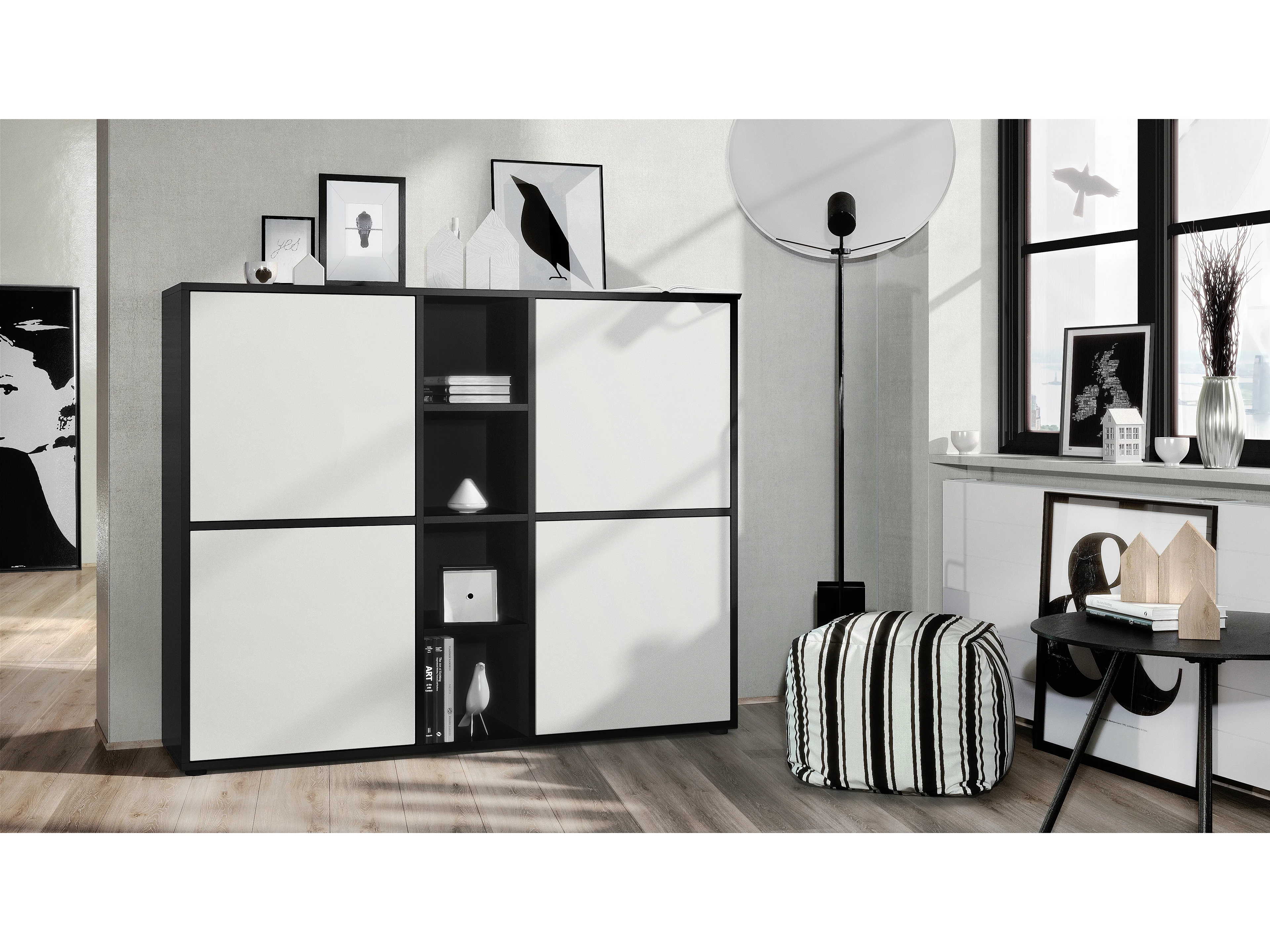Highboard Cuba V3, noir mat/blanc mat - Buffet moderne à 12 compartiments (130,5 x 105,5 x 35,5 cm)