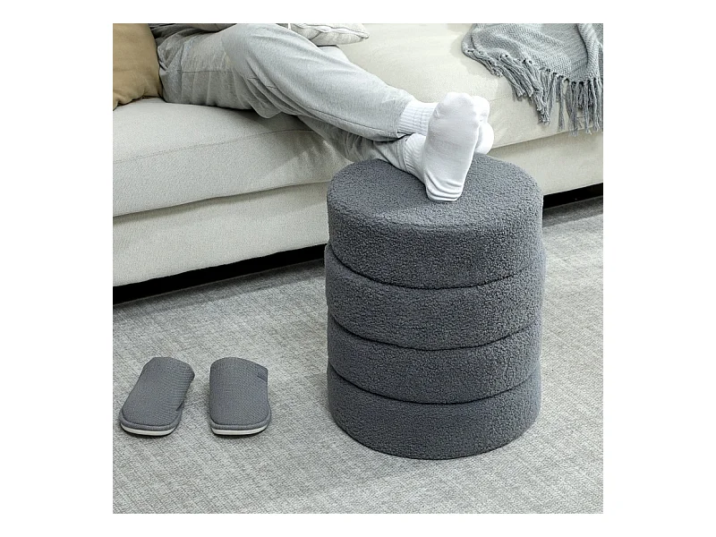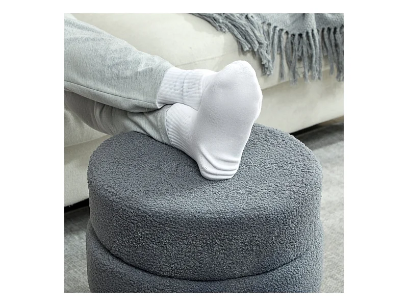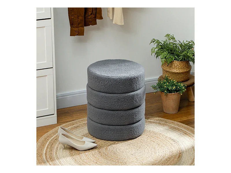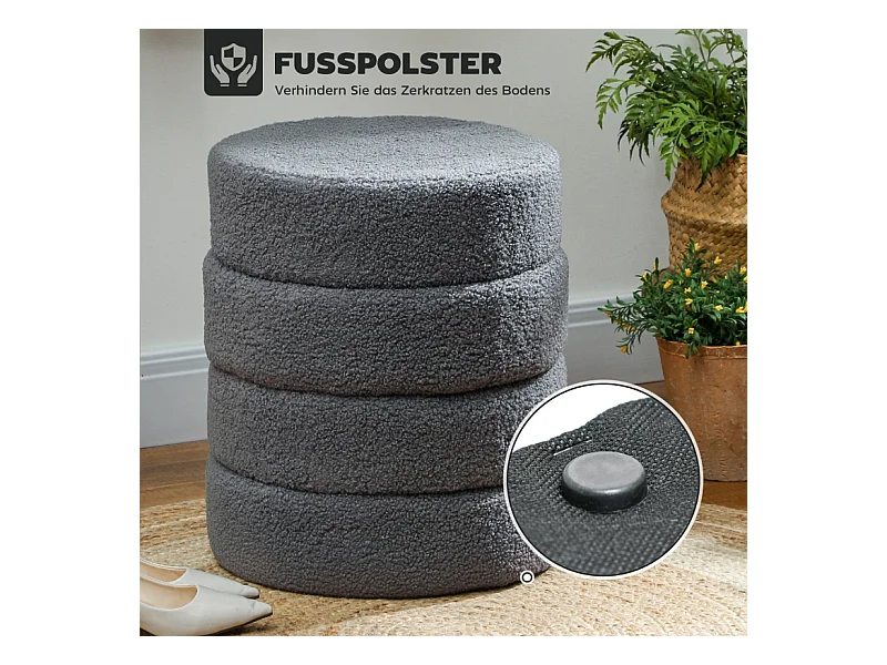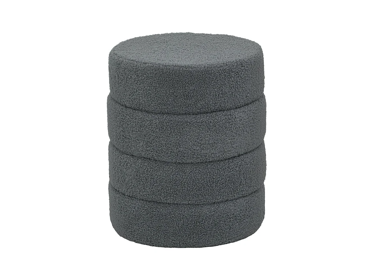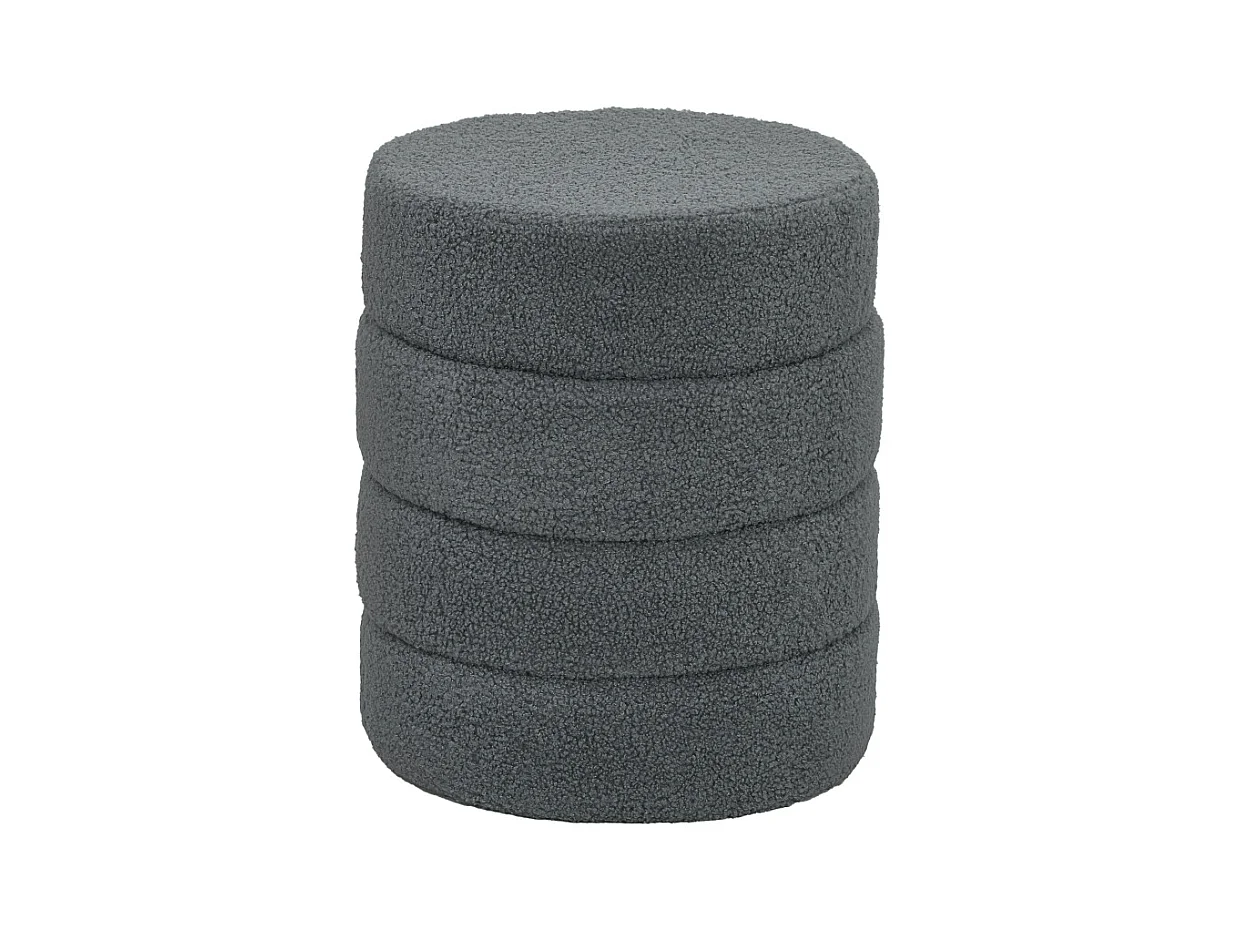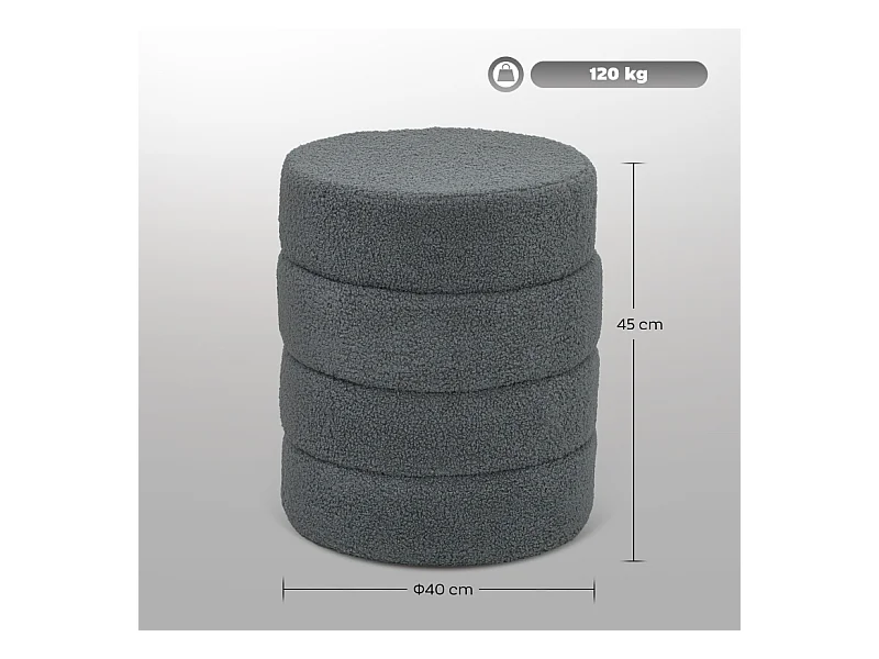 Hocker rond, Teddyfleece, jusqu'à 120kg, Gris foncé (Φ40x45 cm)
