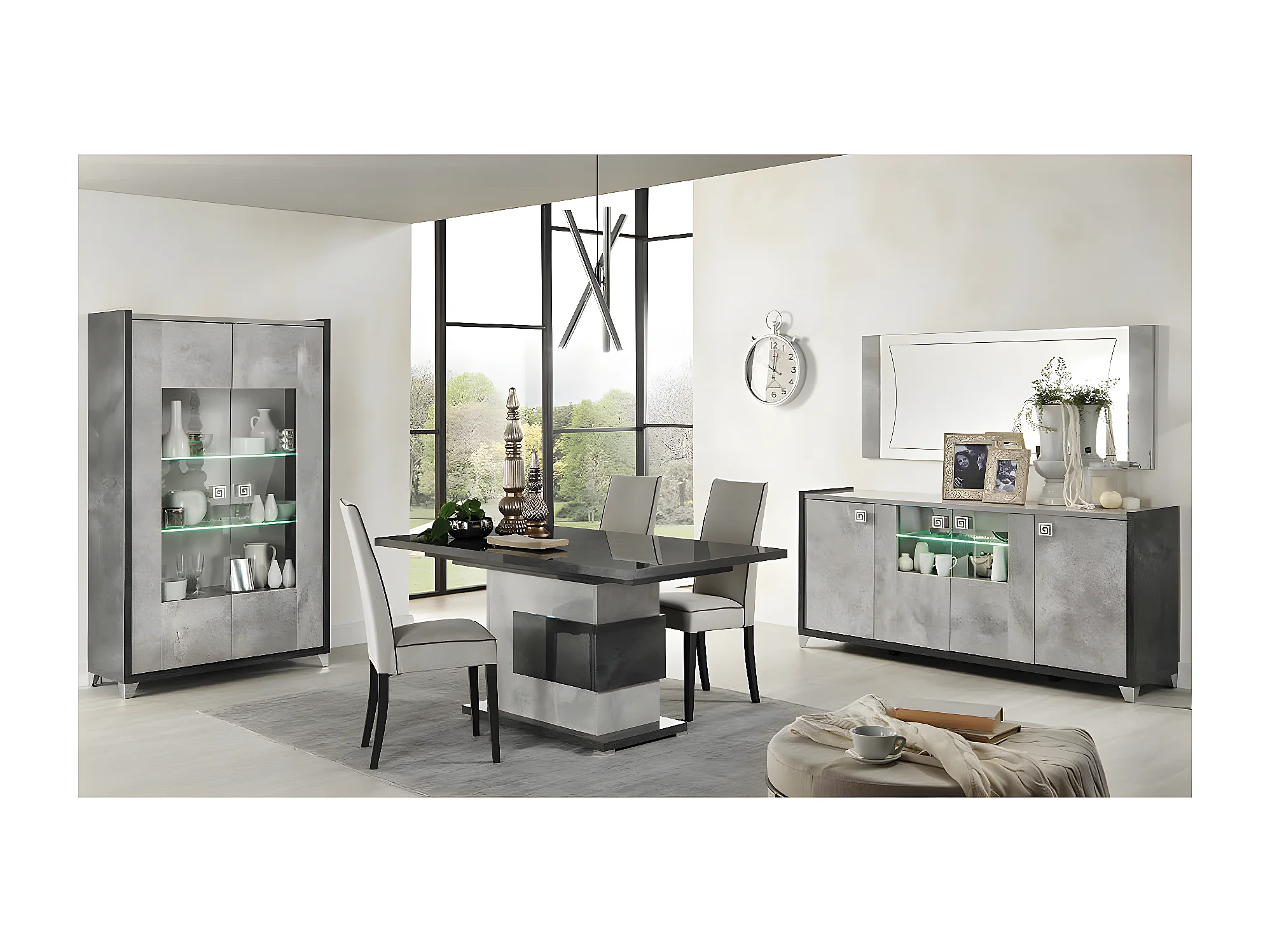 HOFFMAN - Buffet 4 Portes Gris Aspect Pierre avec Led