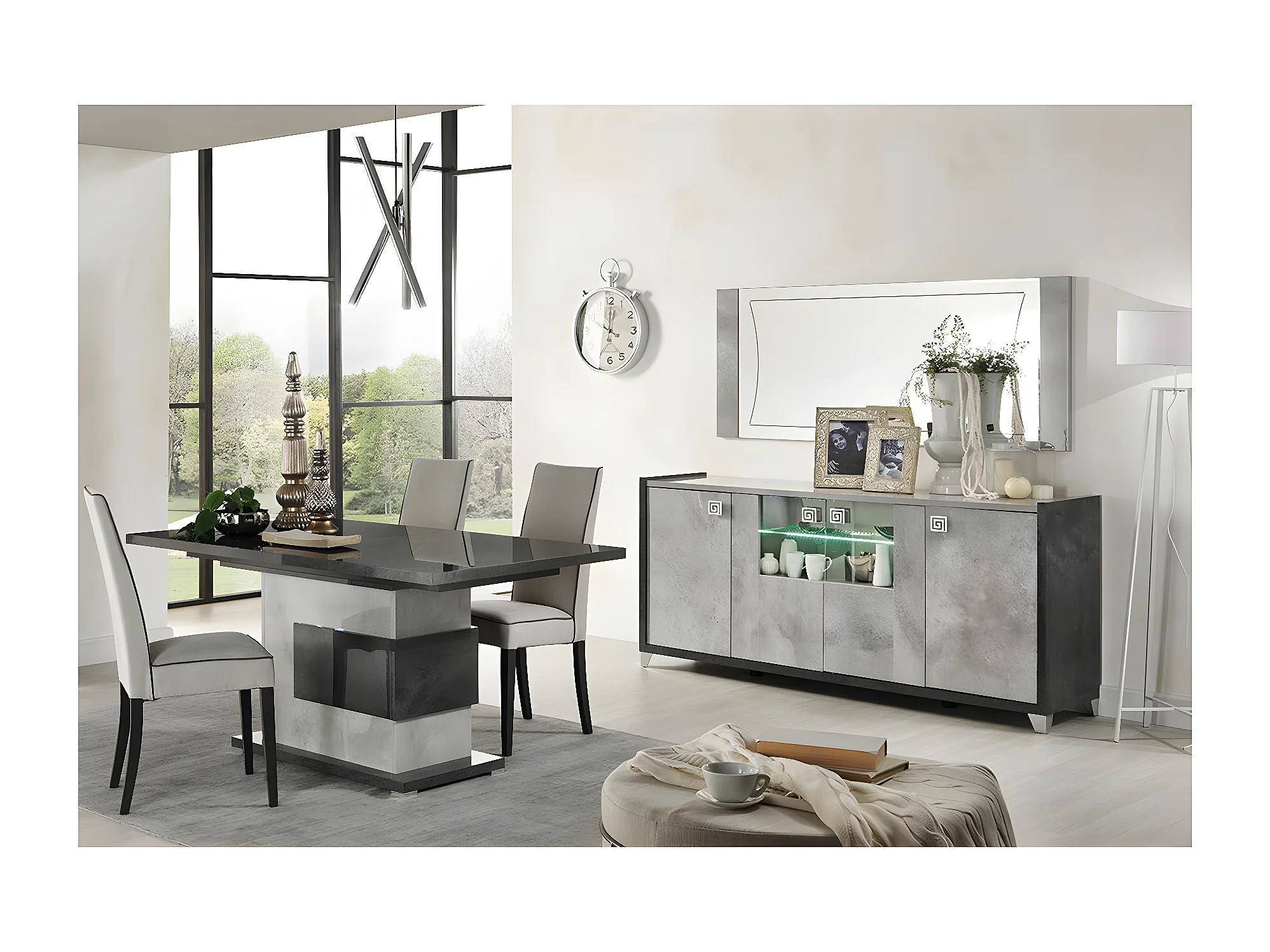HOFFMAN - Ensemble Buffet 4P avec Miroir + Table Repas à Pied Central