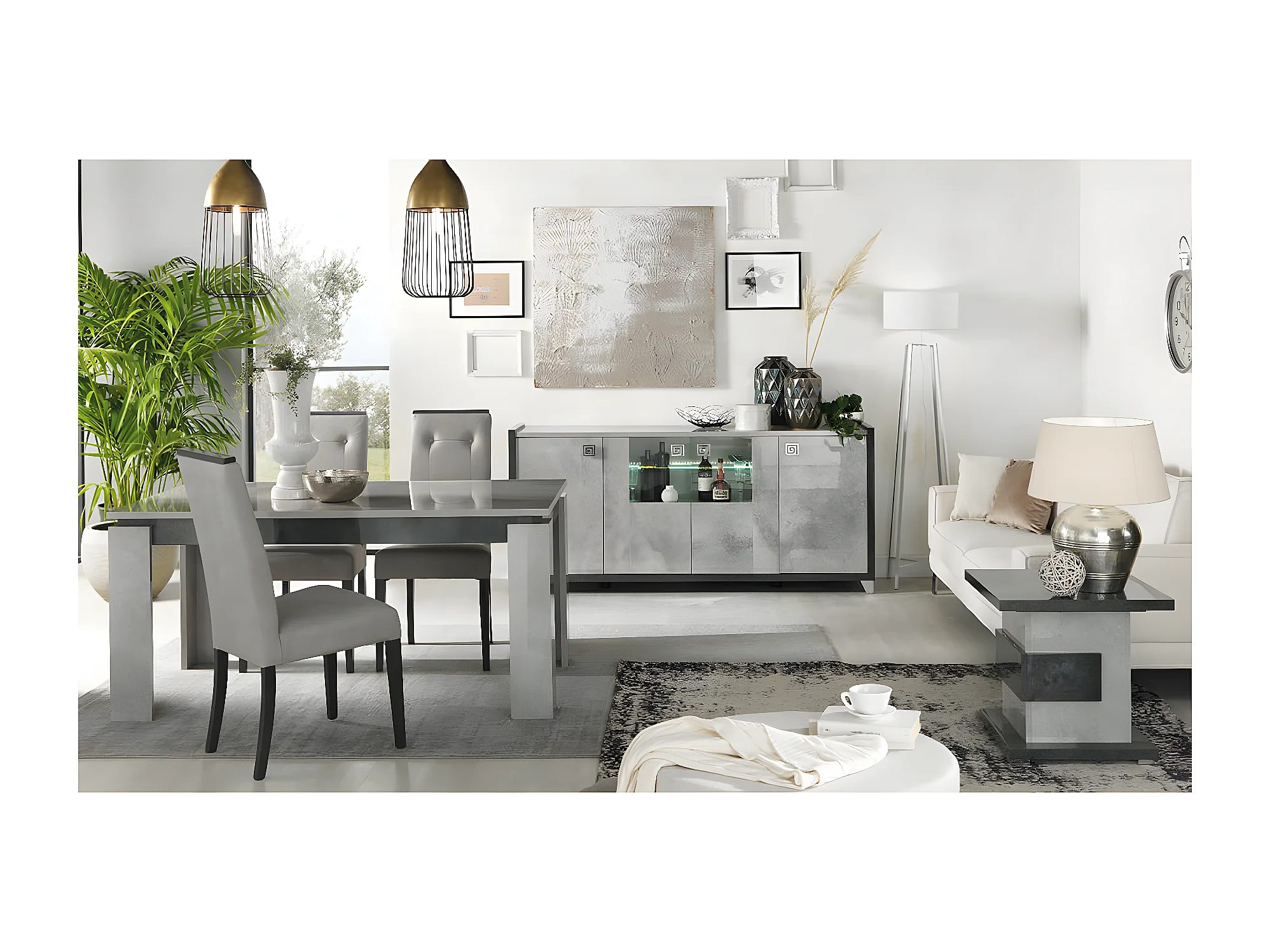 HOFFMAN - Table d'Appoint à Pied Central Gris Aspect Pierre