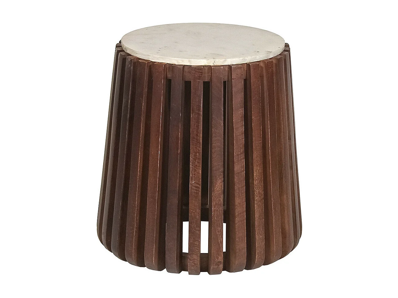HOLDEN - Bout de canapé en Marbre Blanc et Socle en Manguier Teinté Noyer