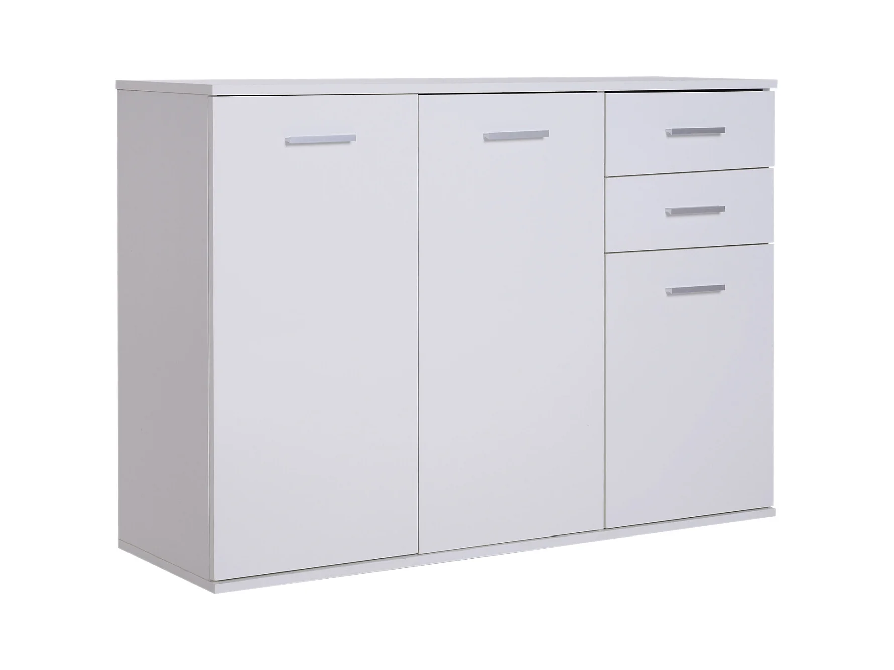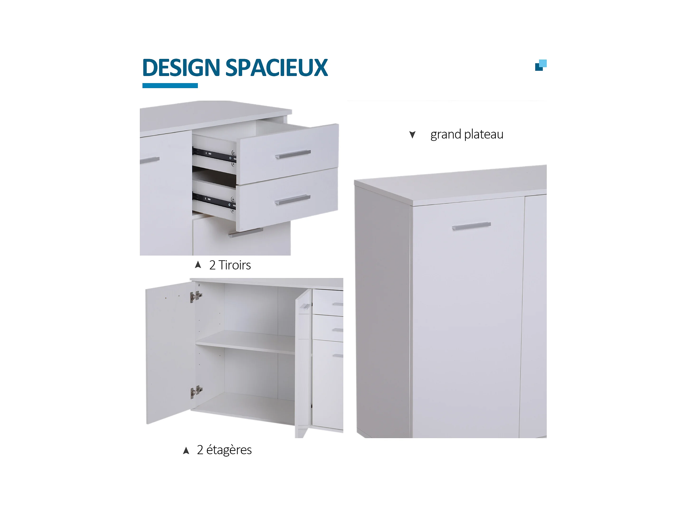 HOMCOM Buffet meuble de rangement 2 tiroirs coulissants 2 placards étagère réglable panneaux particules blanc