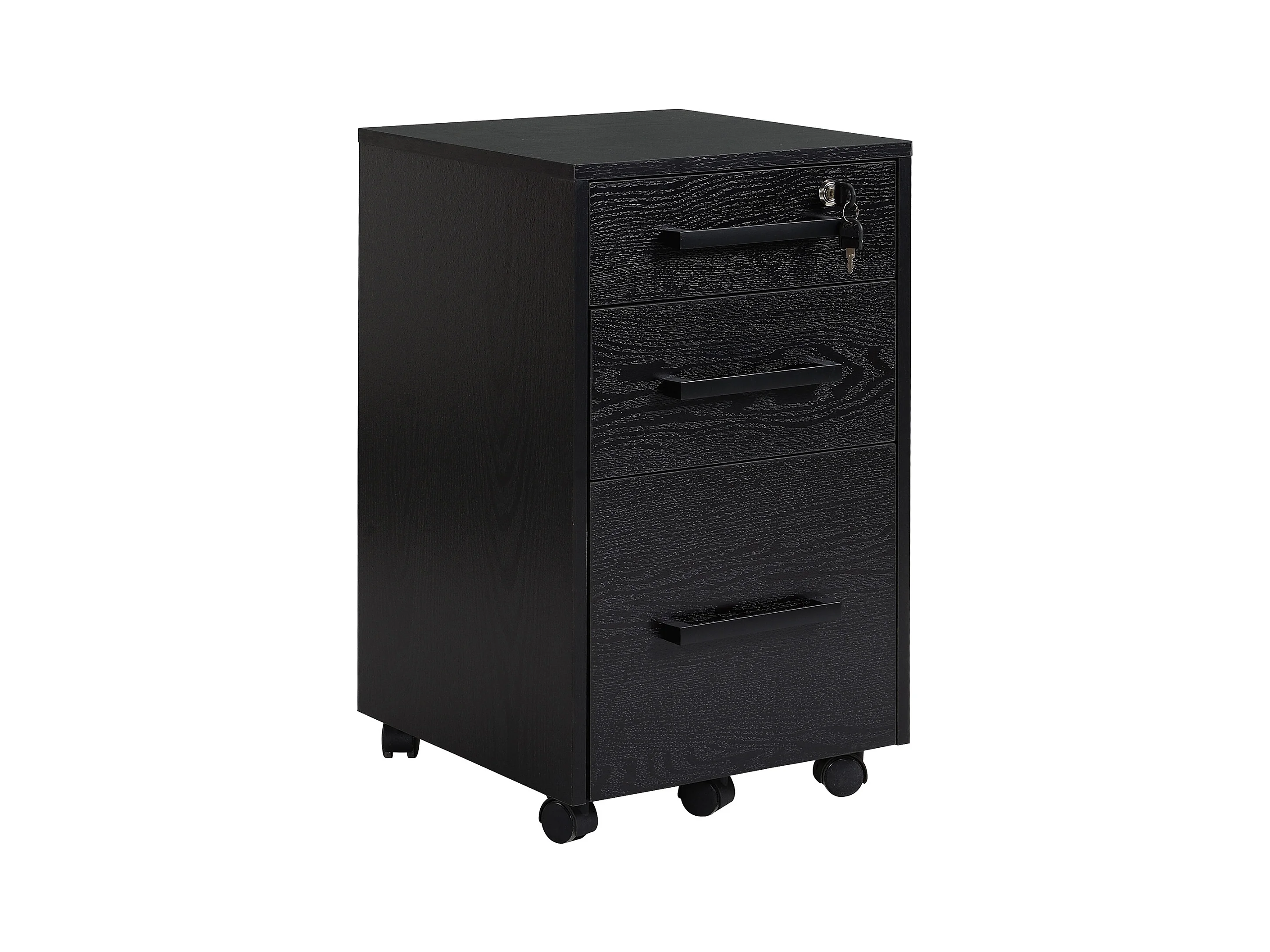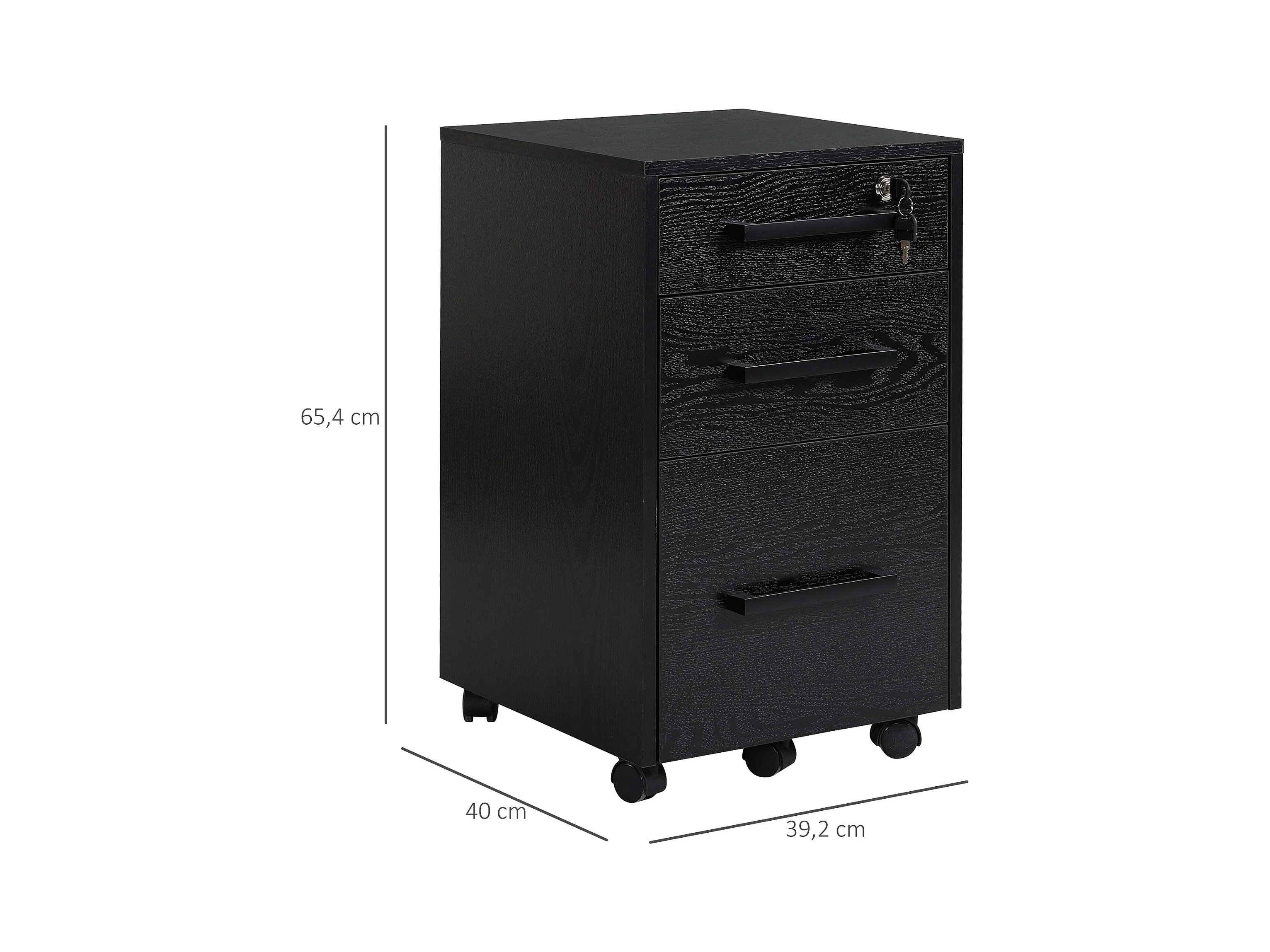HOMCOM Caisson de bureau rangement bureau sur roulettes 3 tiroirs 1 verrouillable 1 trieur à dossiers MDF panneaux particules noir
