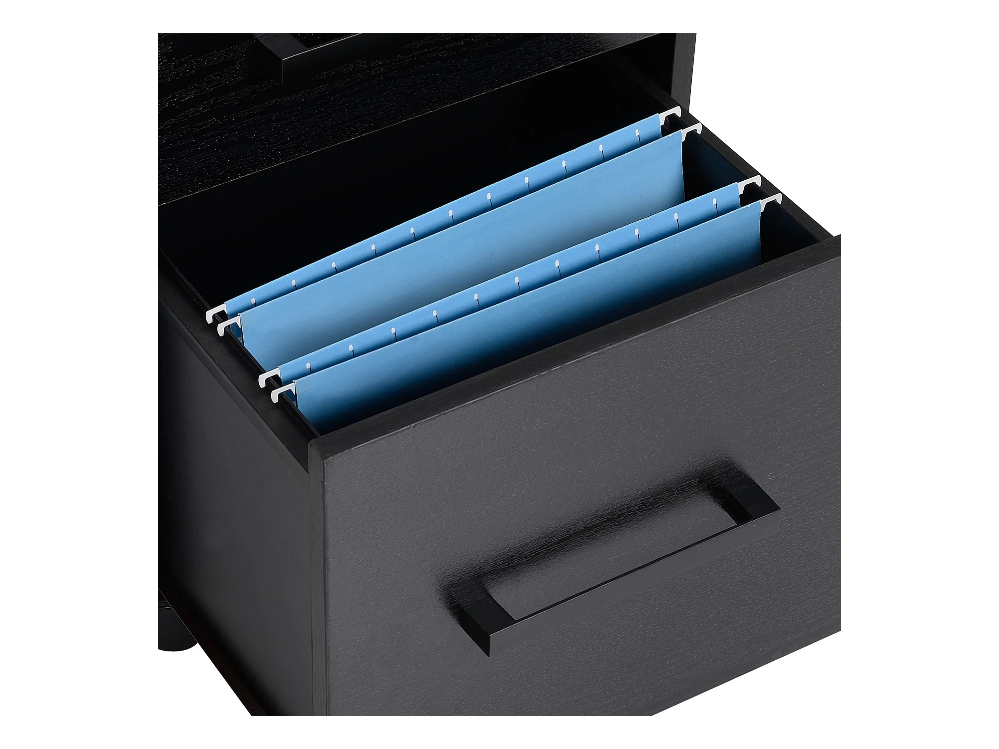 Classeur Dossier Mobile SucceBuy en Bois, Meuble de Rangement de Bureau à 2 Tiroirs avec Étagères Ouvertes et Roulettes Verrouillables, pour Bureau, Noir
