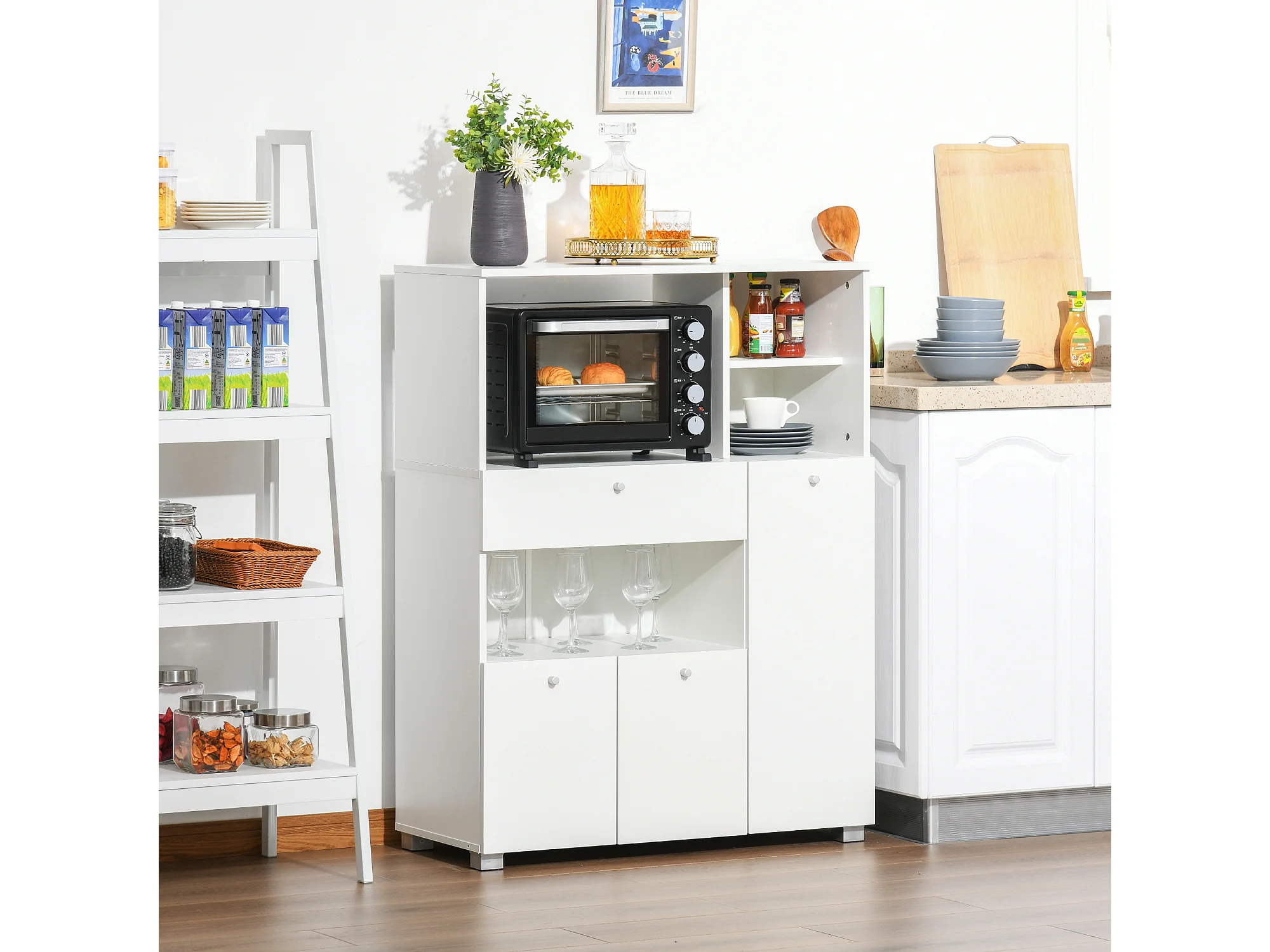 Armoire de cuisine buffet haut 4 portes 3 étagères tiroir verre trempé panneaux MDF blanc
