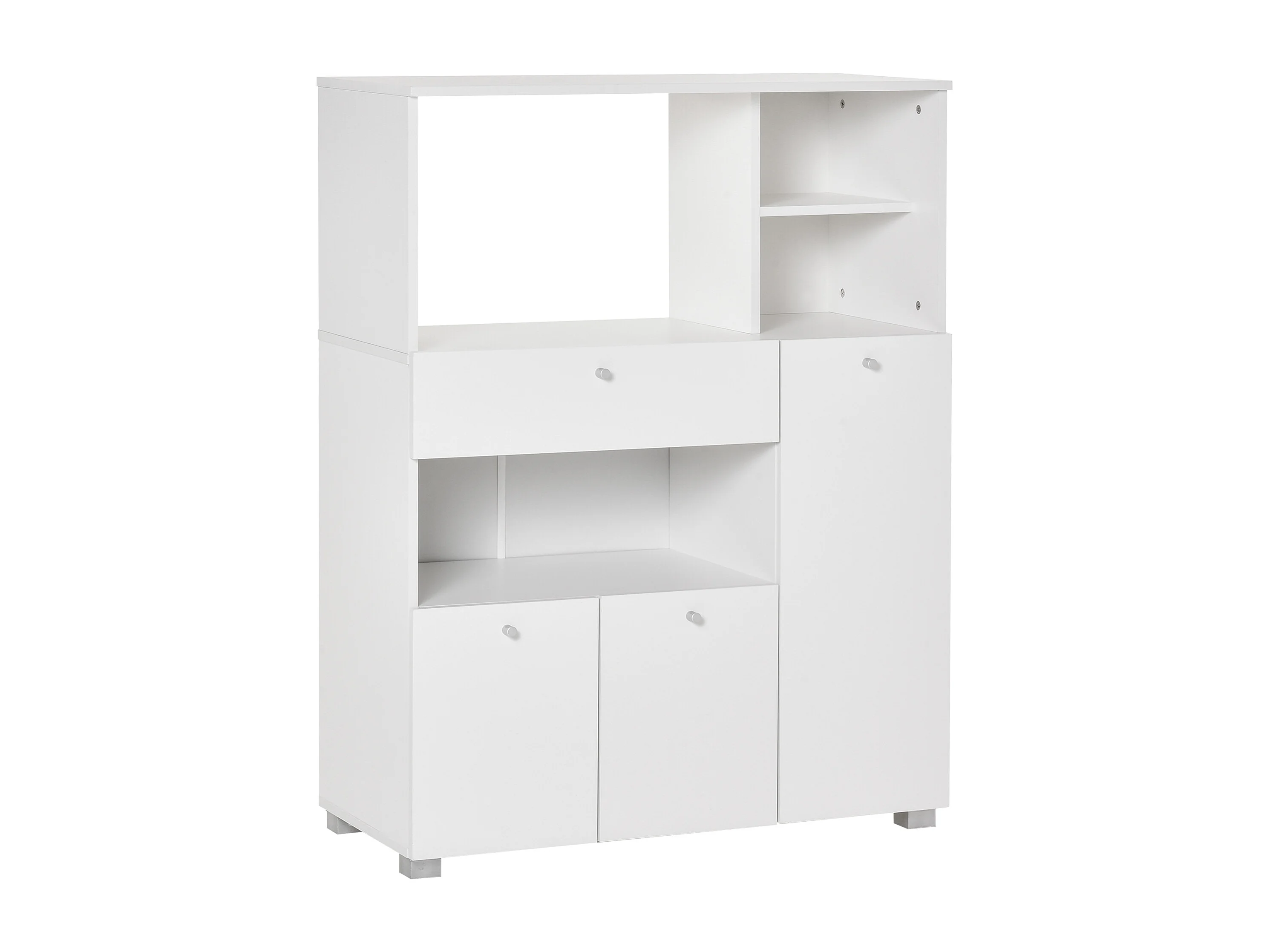 Meuble de cuisine multi-rangements 2 placards 4 niches tiroir coulissant dim. 90L x 40l x 120H cm panneaux particules blanc