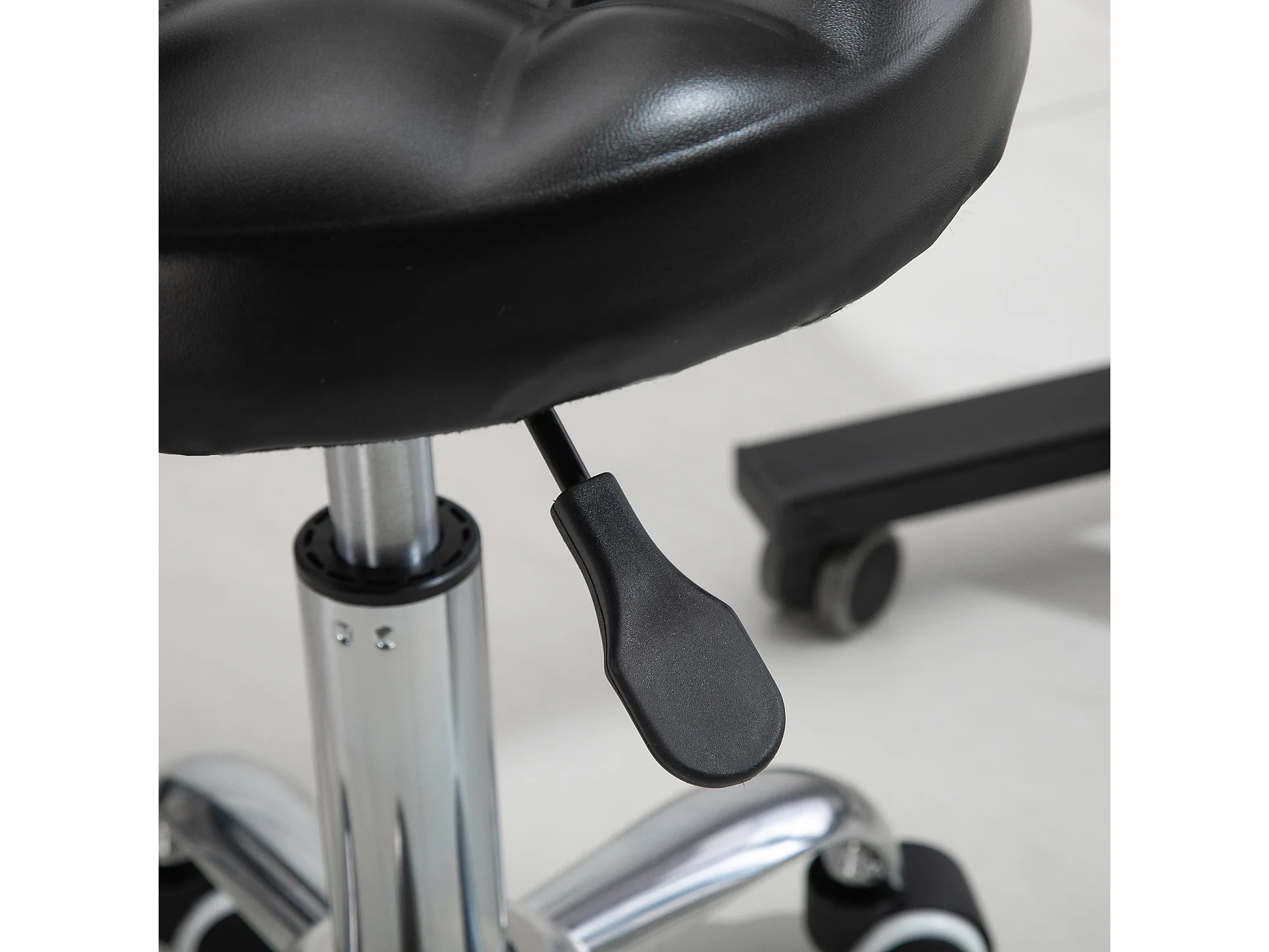 HOMCOM Tabouret de massage - tabouret de travail pivotant 360° - assise réglable 49-64H cm, dossier ergonomique - métal chromé revêtement synthétique noir