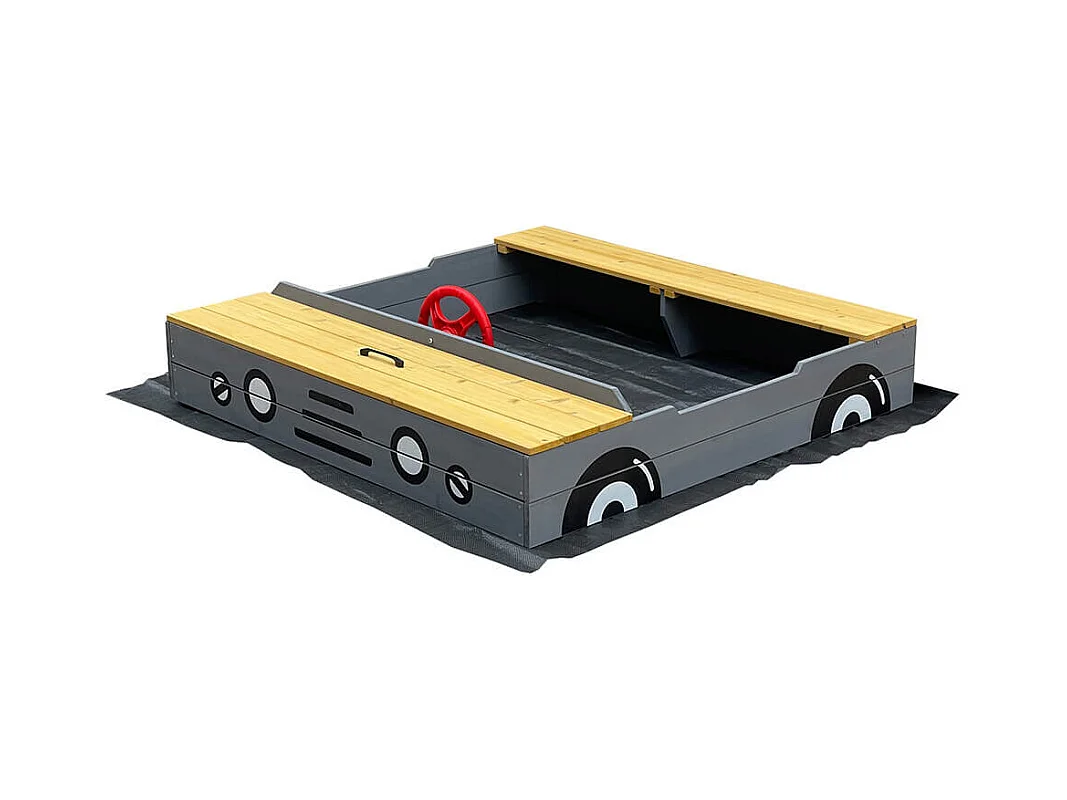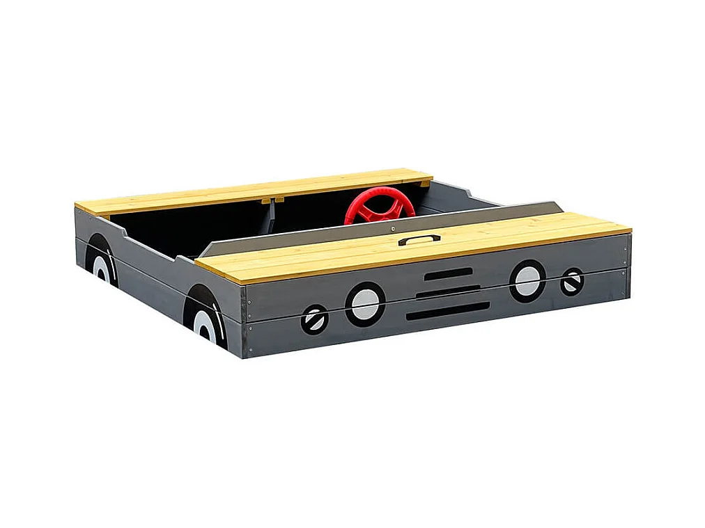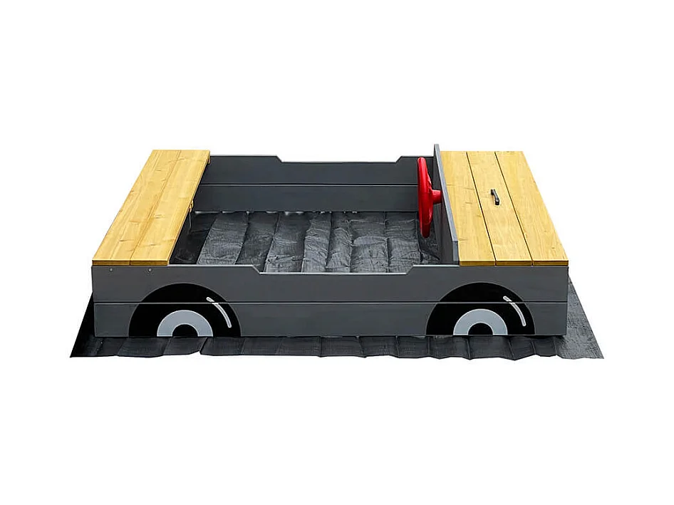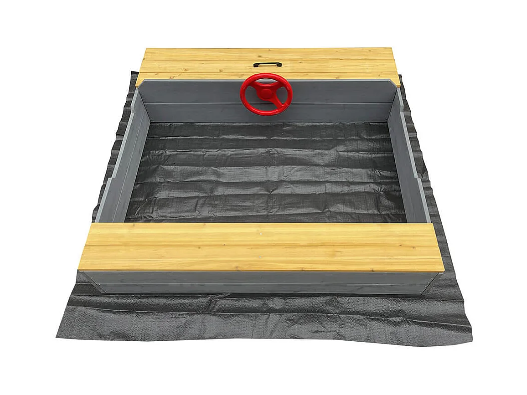 Bac à sable en bois avec toit refermable et doublure dim. 120 x 120 x 126,5 cm bois sapin