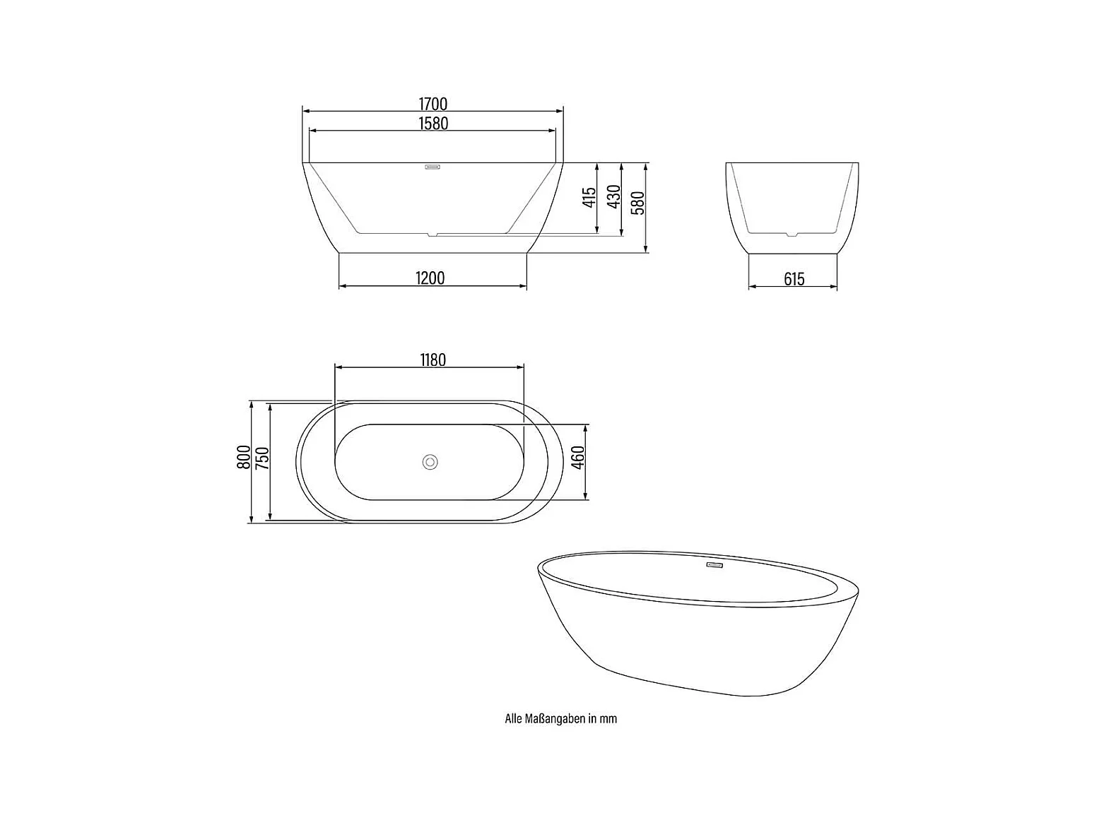 Home Deluxe Baignoire en pose libre CODO BLACK