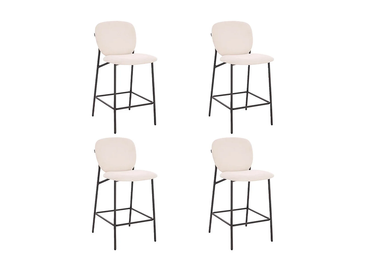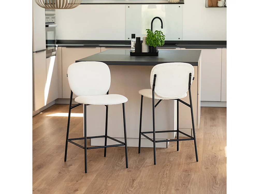 Home Deluxe CELDA Bouclé velours - set de 4 chaises blanches | Chaises de bar
