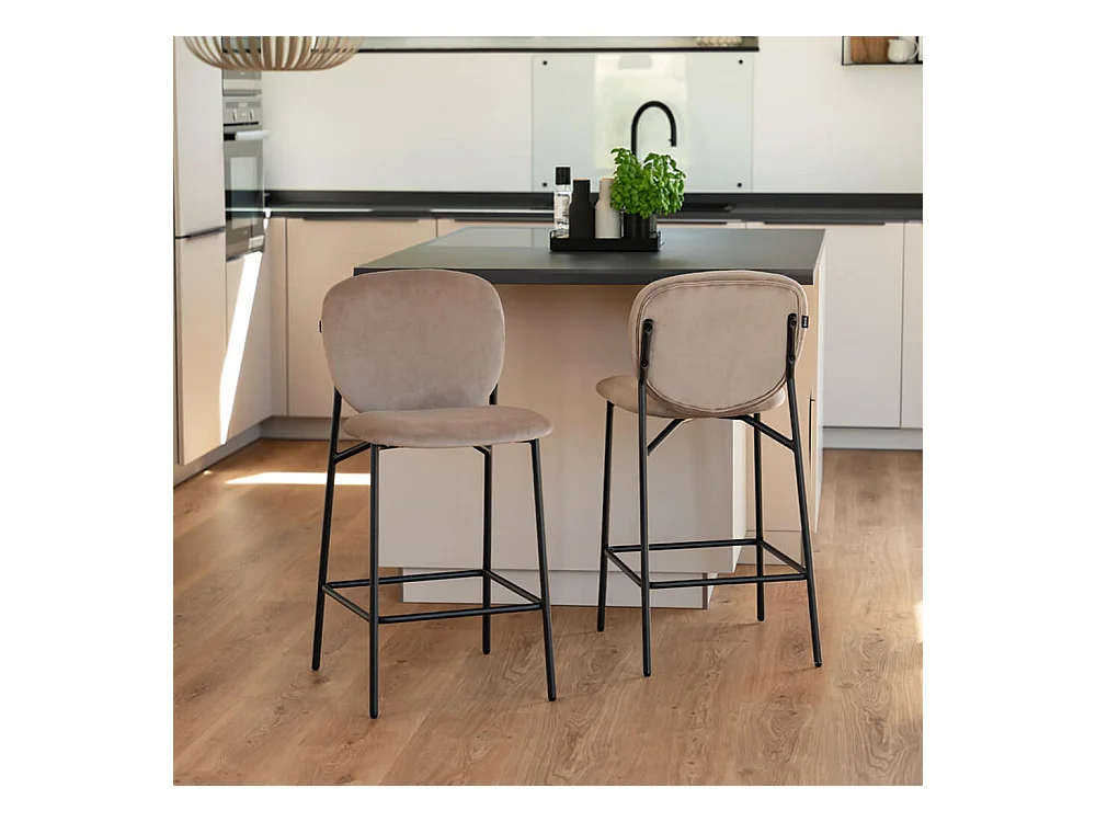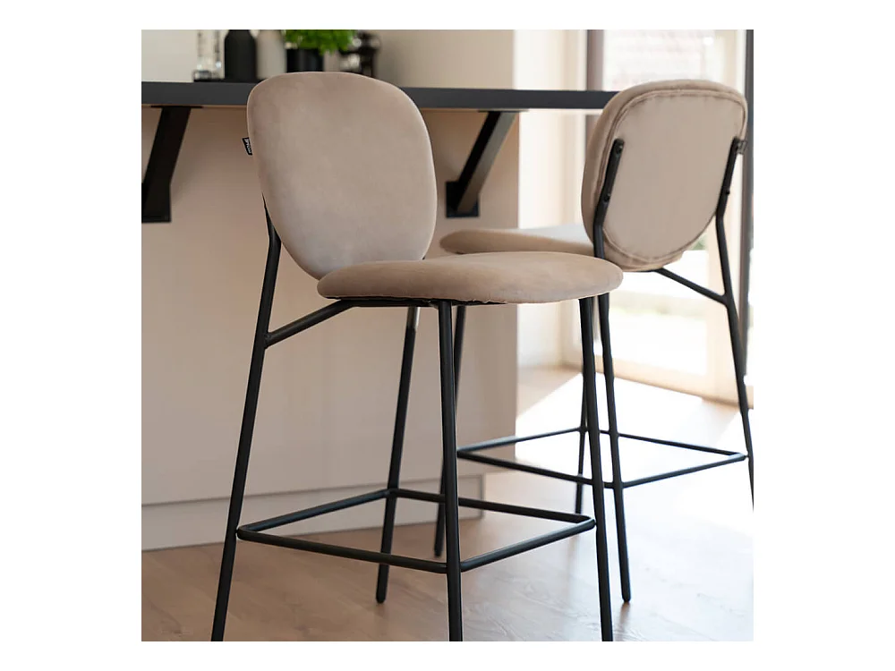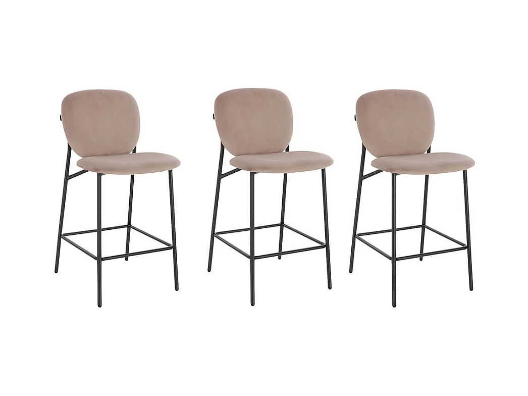 Home Deluxe CELDA tabouret de bar velours - set de 3 tabourets marron clair | Chaises de bar
