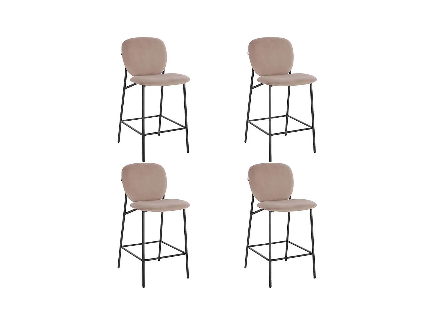 Home Deluxe CELDA Tabouret de bar velours - Set de 4 pièces marron clair | Chaises de bar
