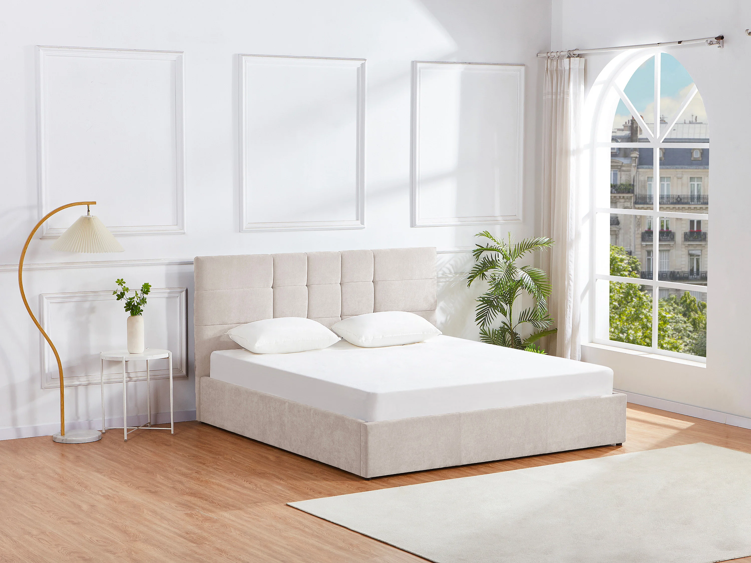 Lit coffre 200 x 200 cm - Tissu - Beige + Matelas - HOPEYA de Pascal Morabito