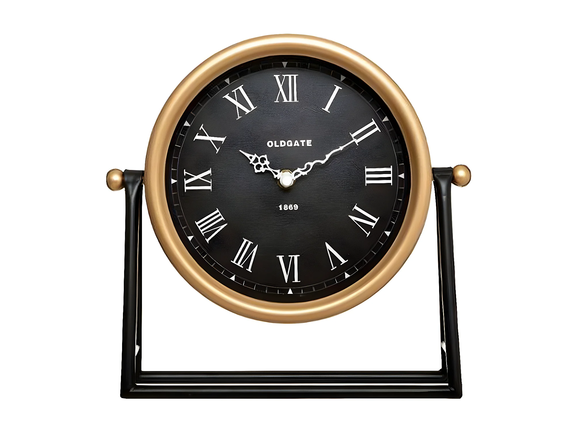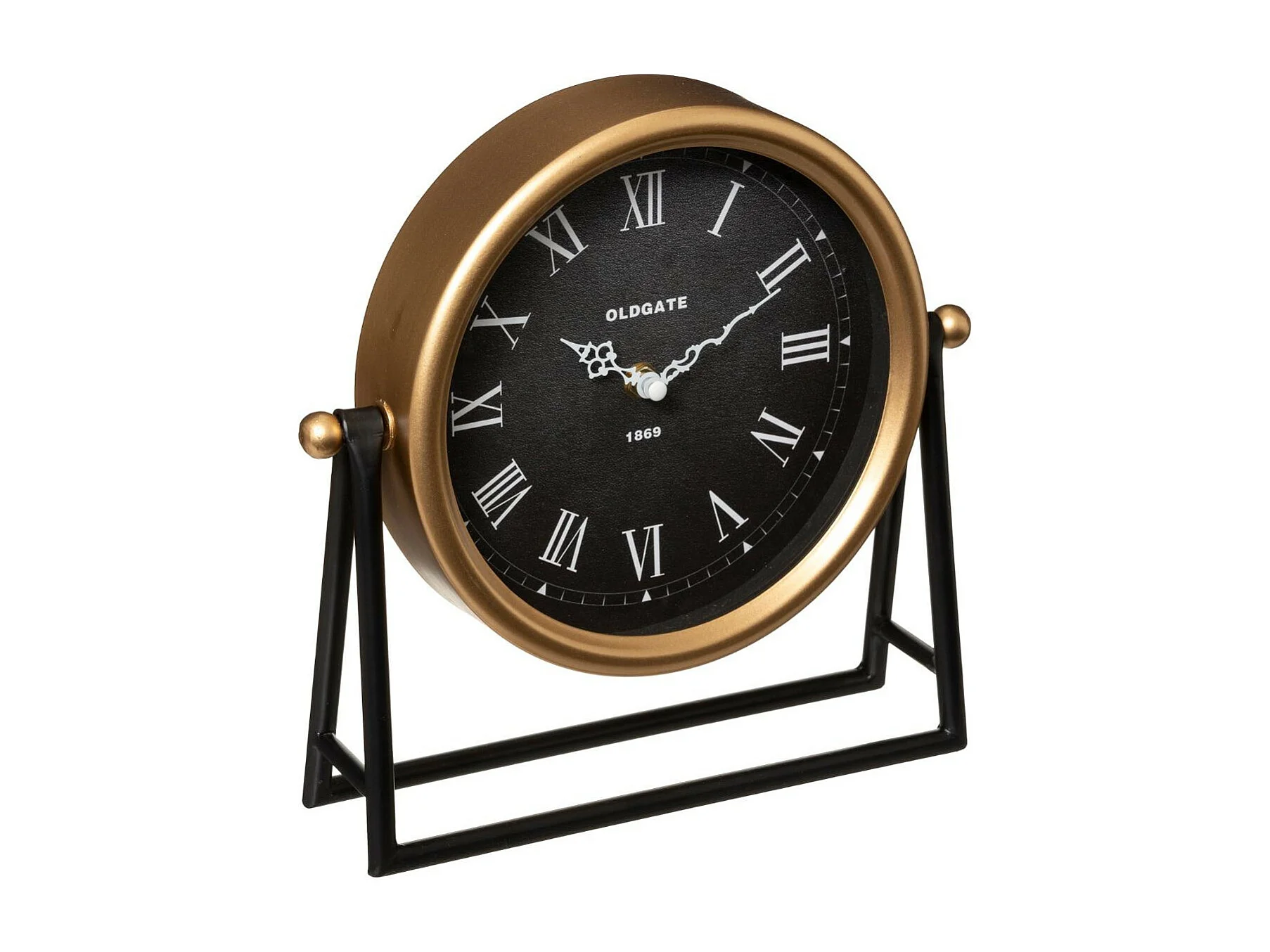 Horloge à poser en métal Noir et Doré 27 x 26 cm