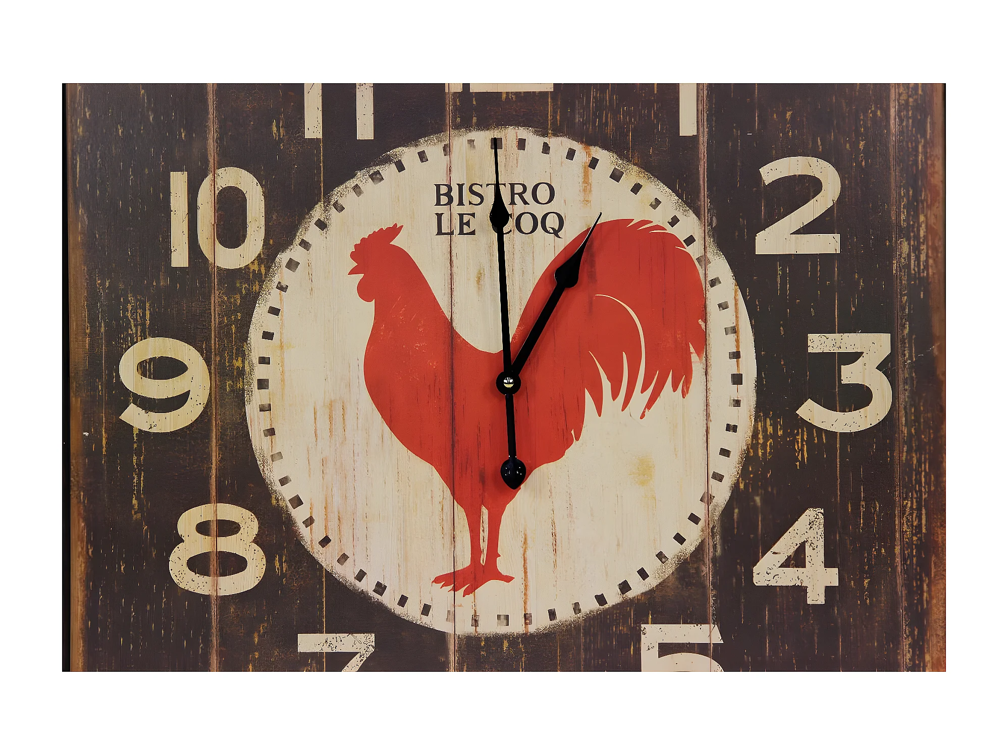 Horloge ancienne murale carre bistrot le coq Fer Marron - Décoration d'Autrefois