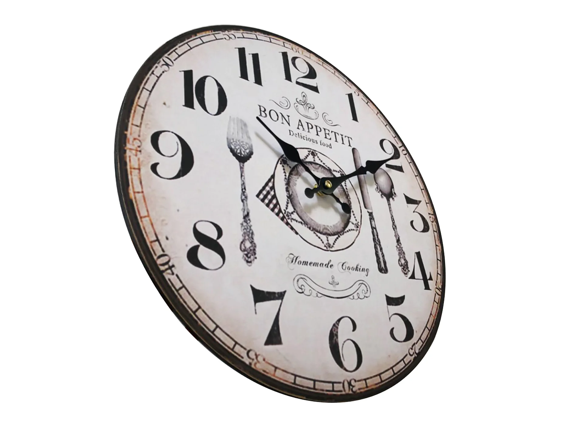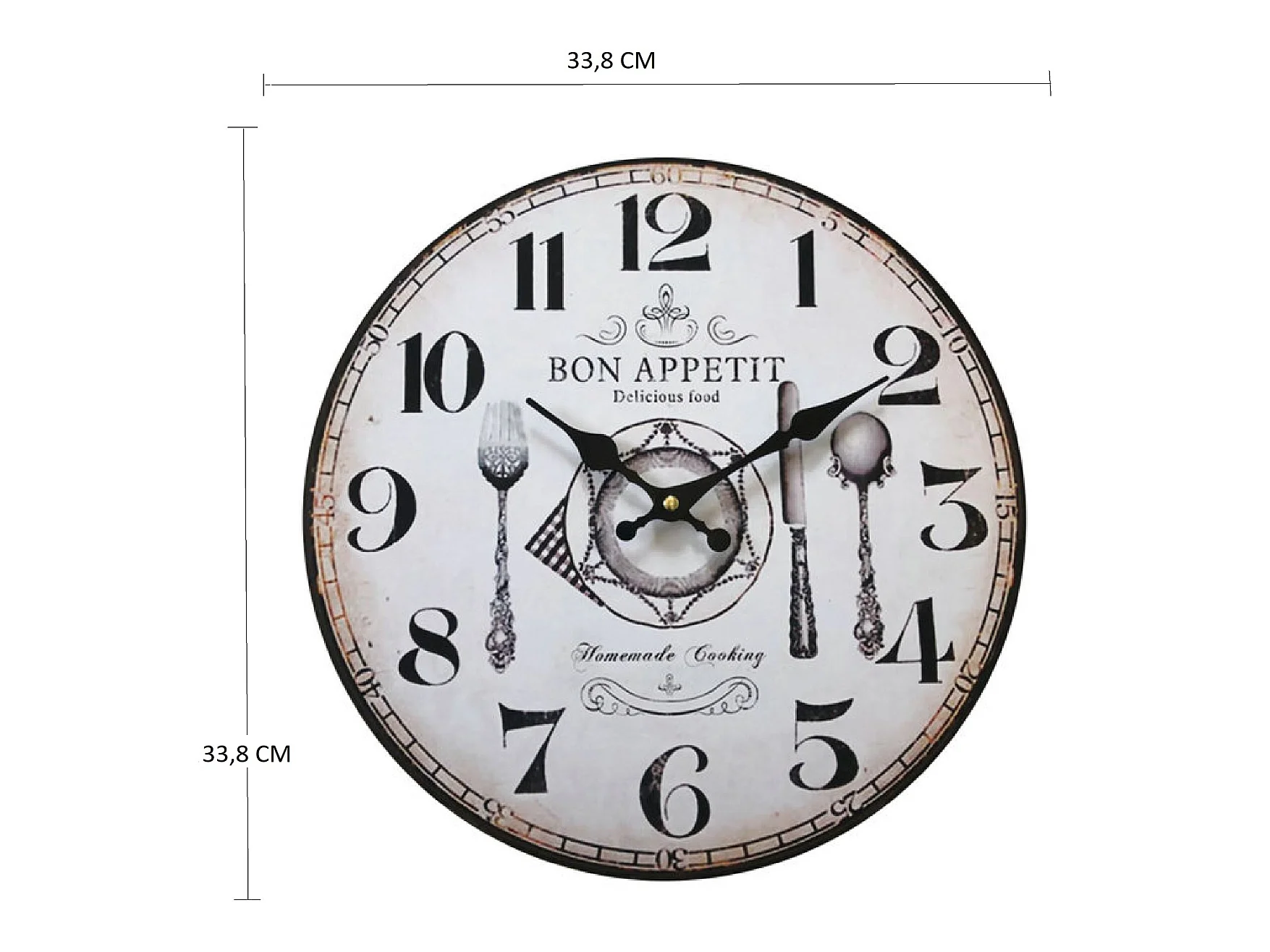 Horloge Cuisine Mdf Rétro Blanc Marron Analogique 33,8x33,8x4
