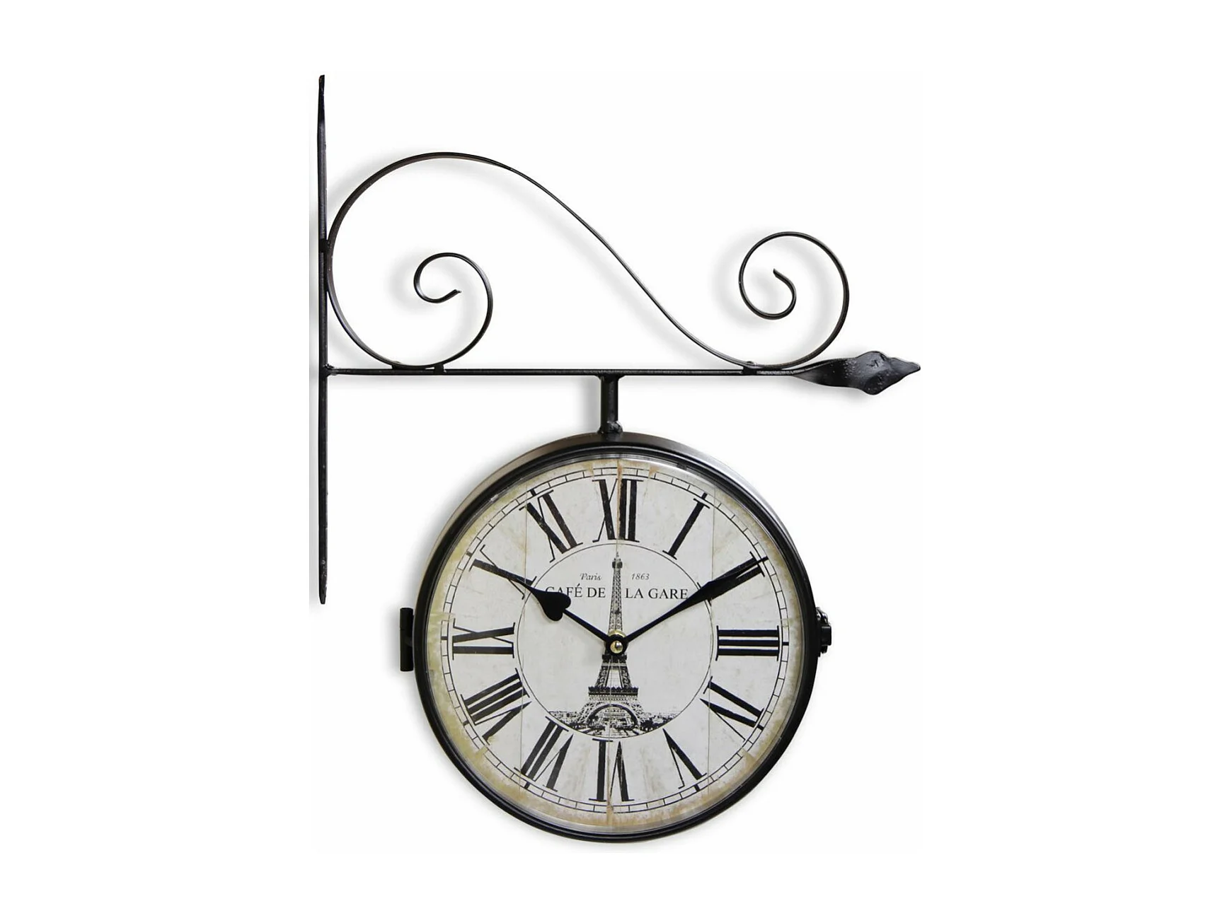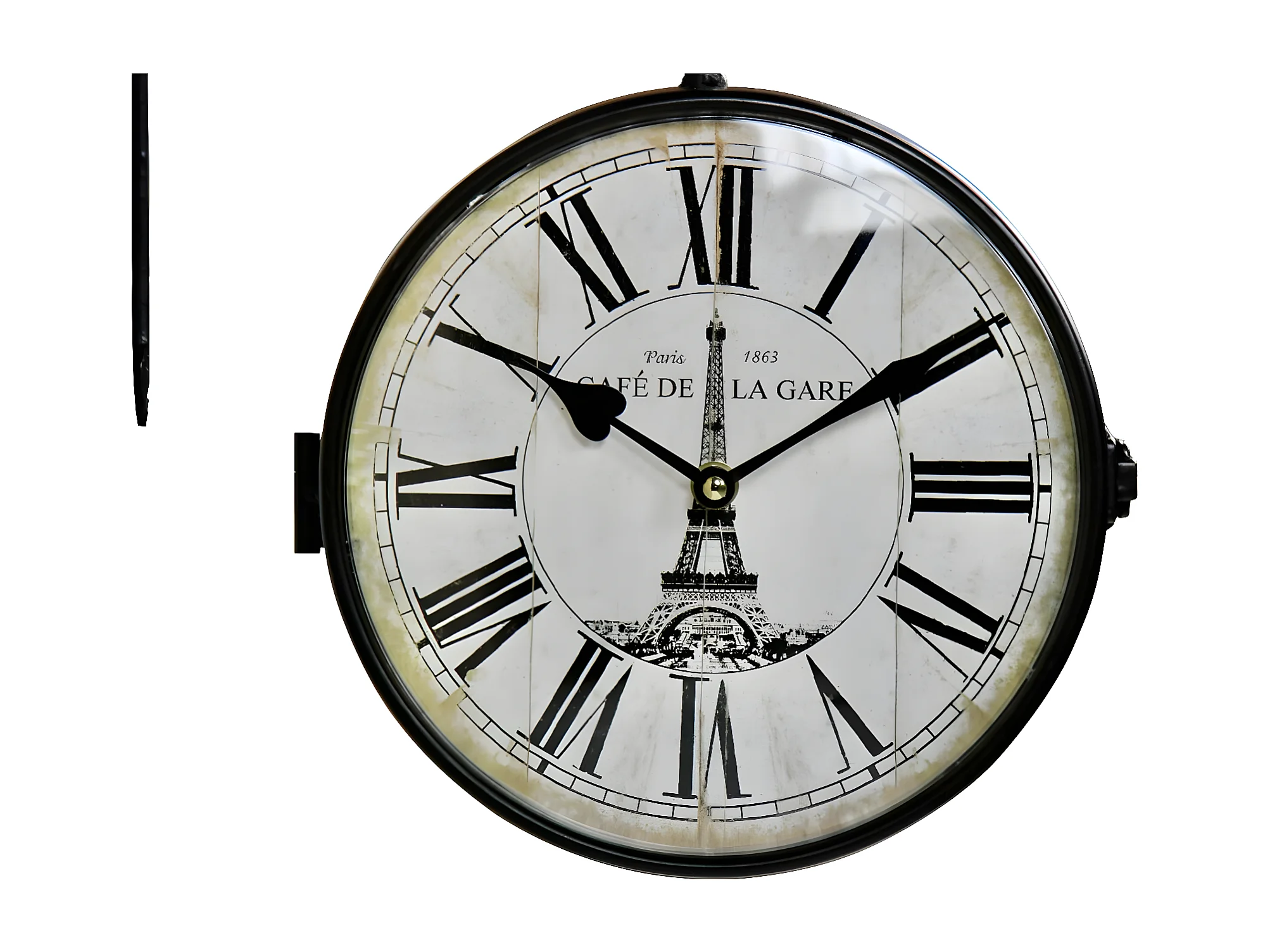 Horloge de gare ancienne double face café de la gare tour eiffel forge Fer Forgé Blanc - Décoration d'Autrefois
