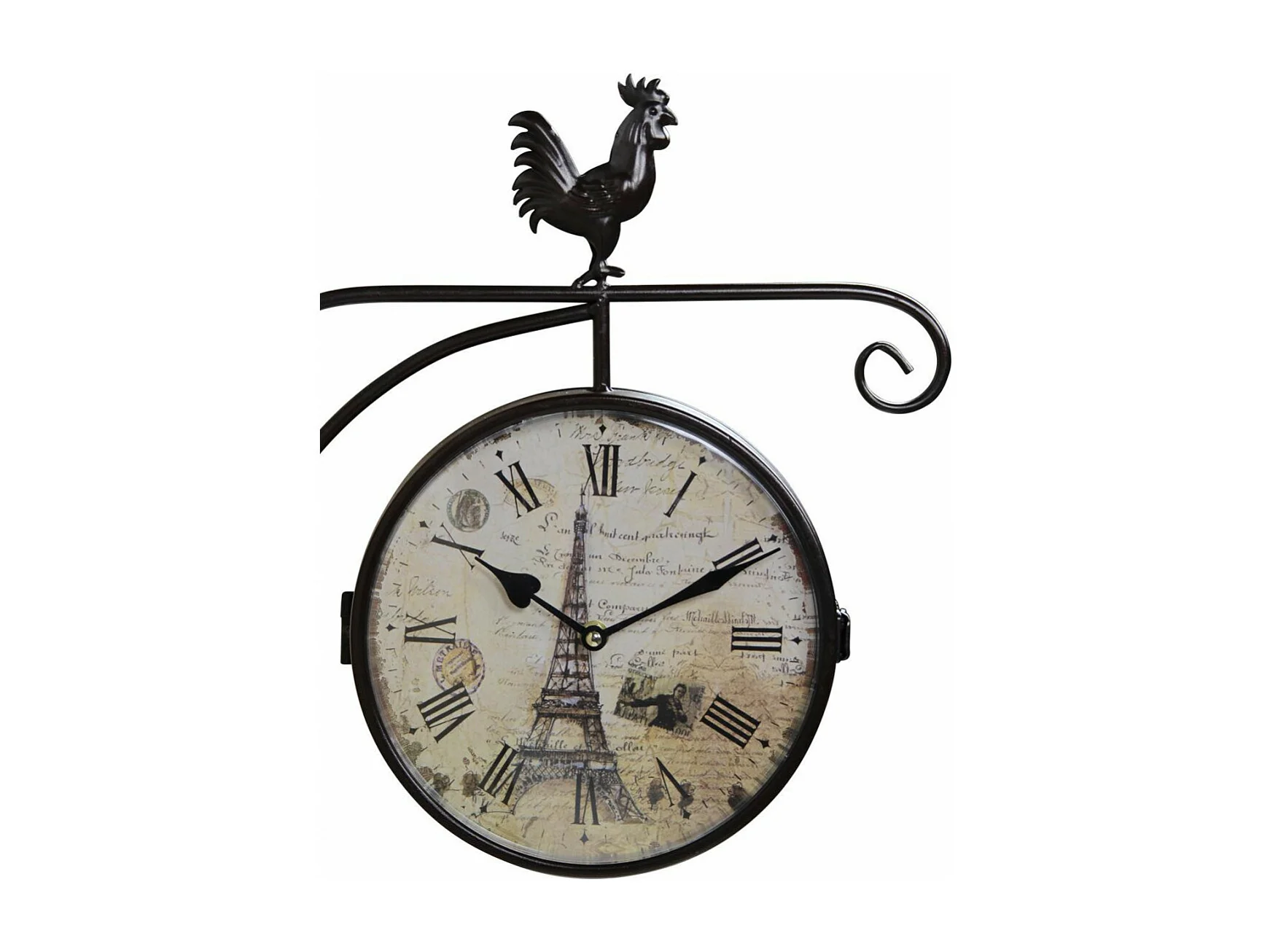 Horloge de gare ancienne double face family coq forge Fer Forgé Blanc - Décoration d'Autrefois