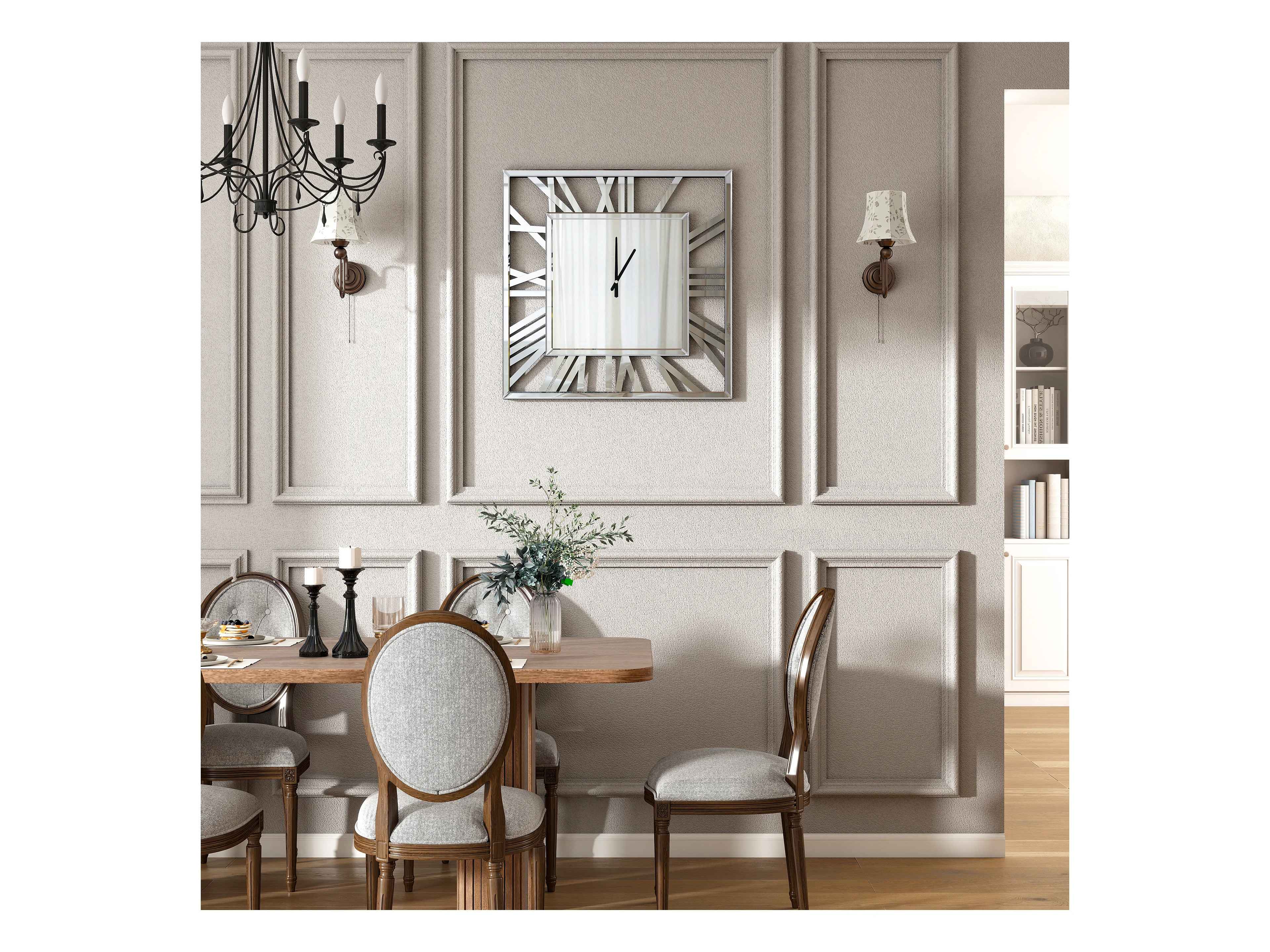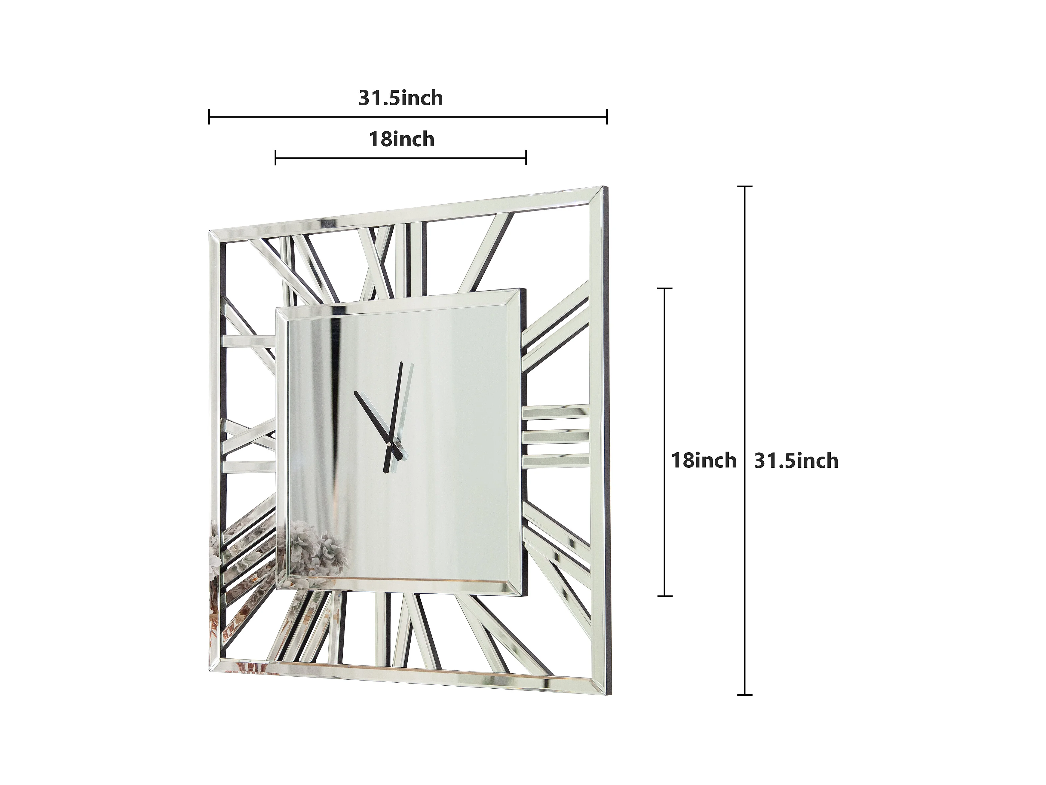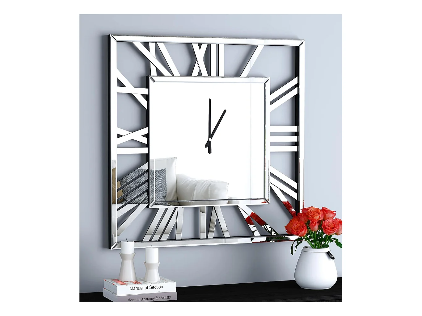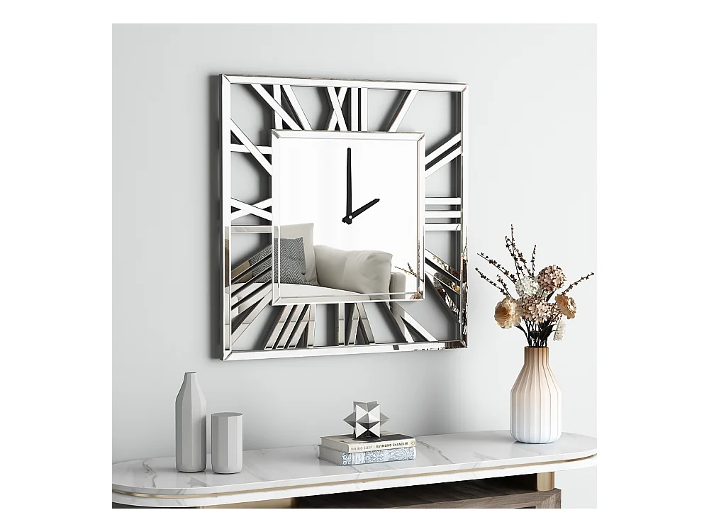 Horloge murale carrée en verre, design moderne et élégant, MDF et verre, argenté (80x3.6x80 cm)
