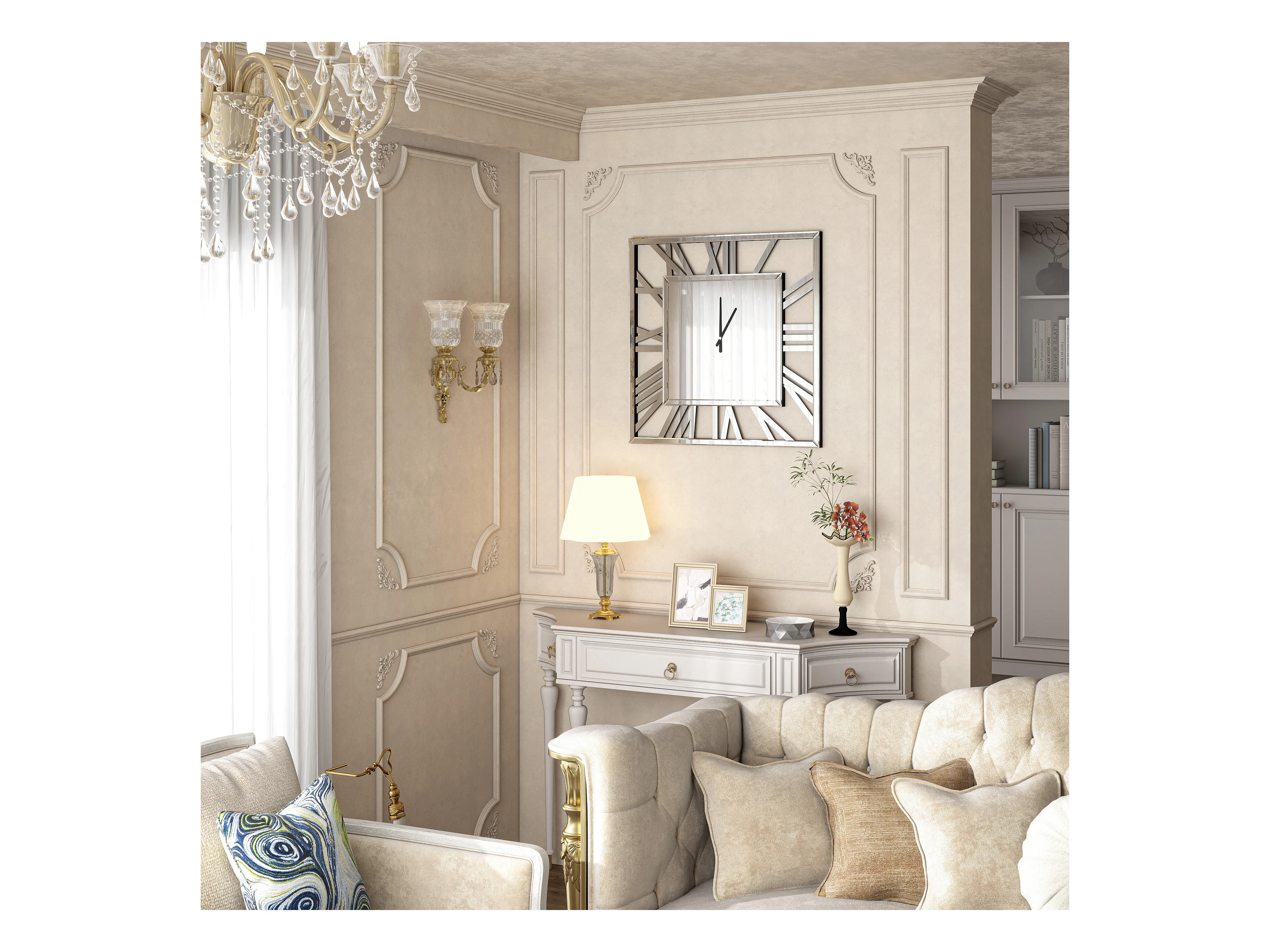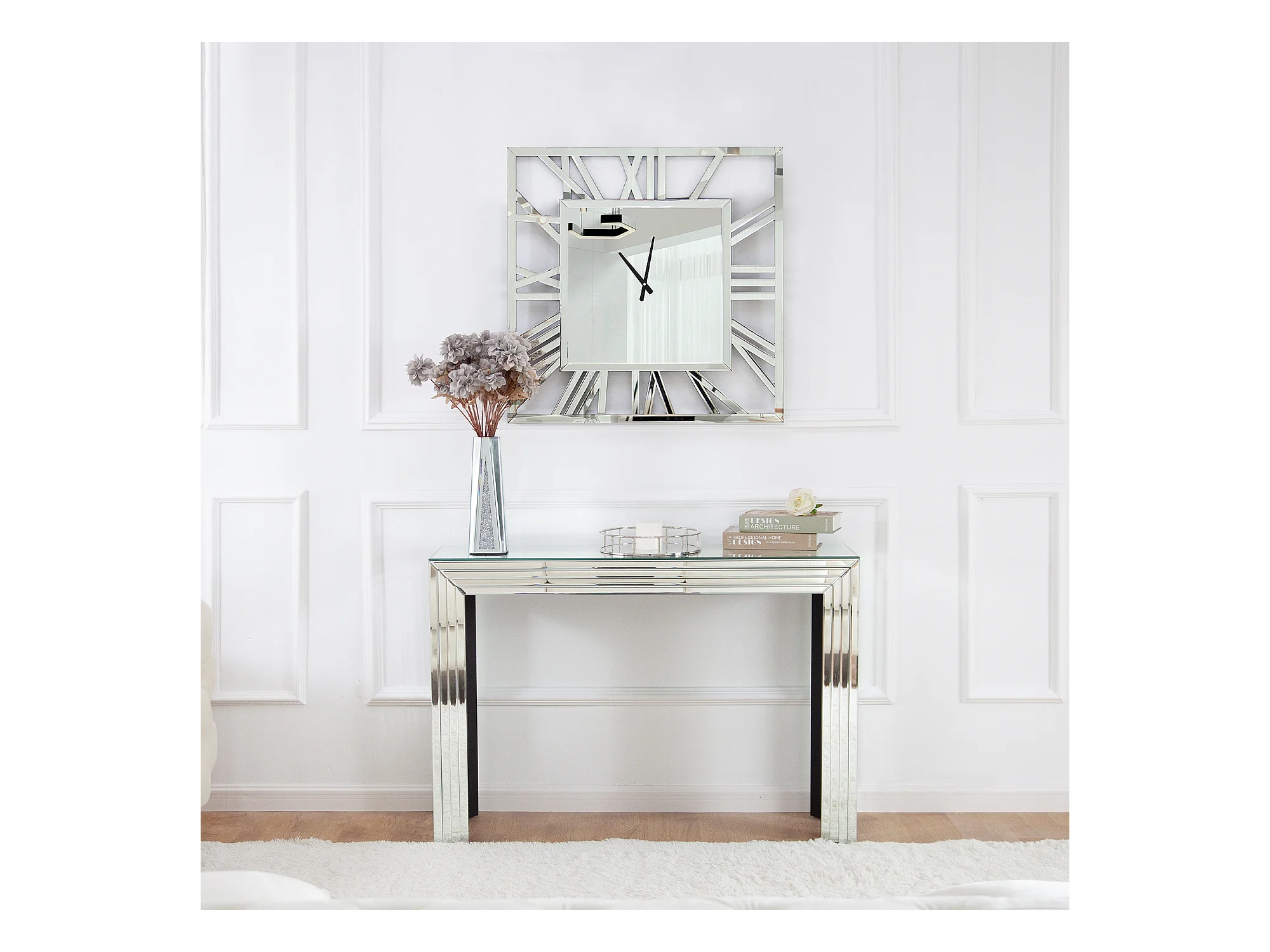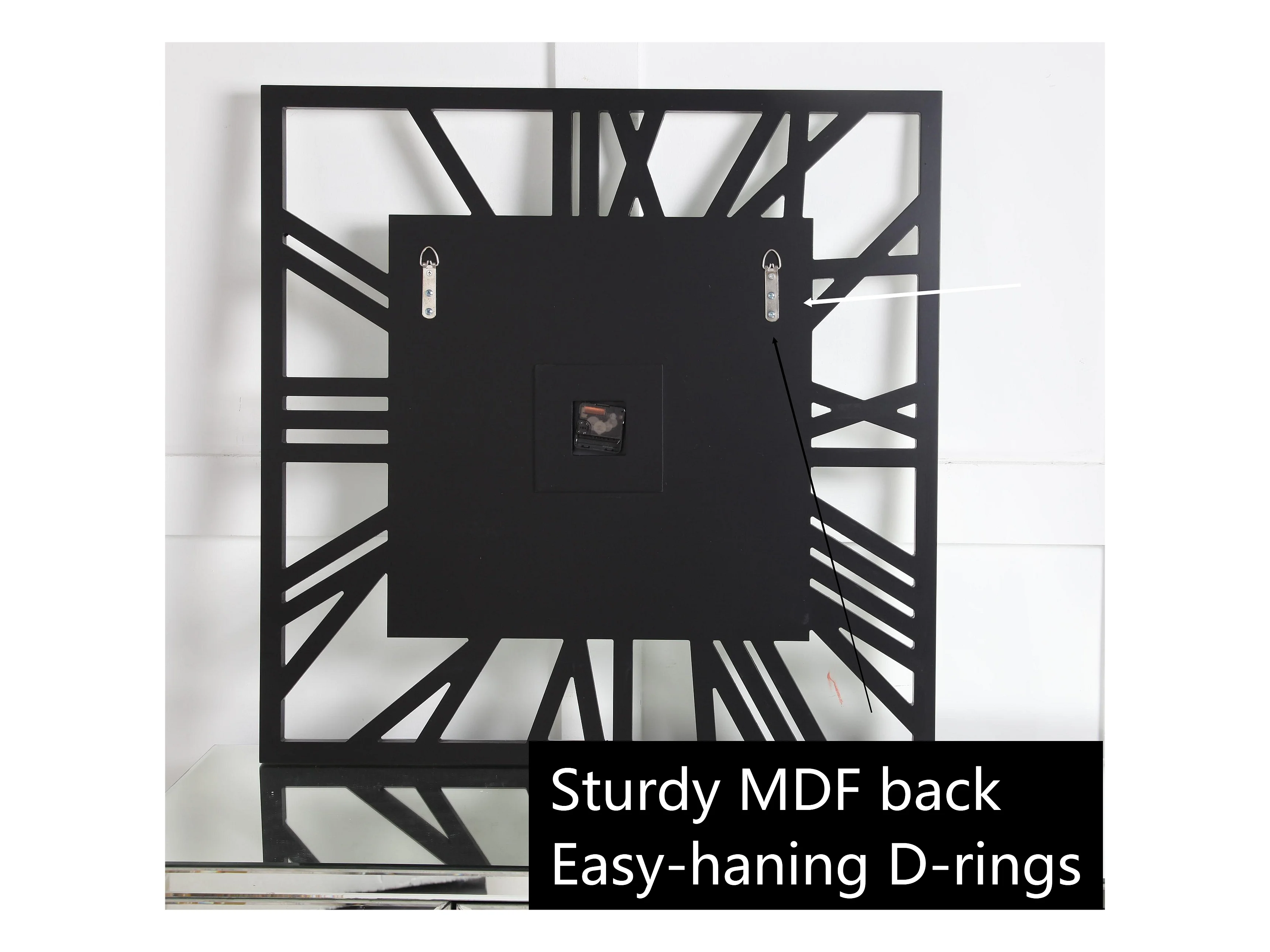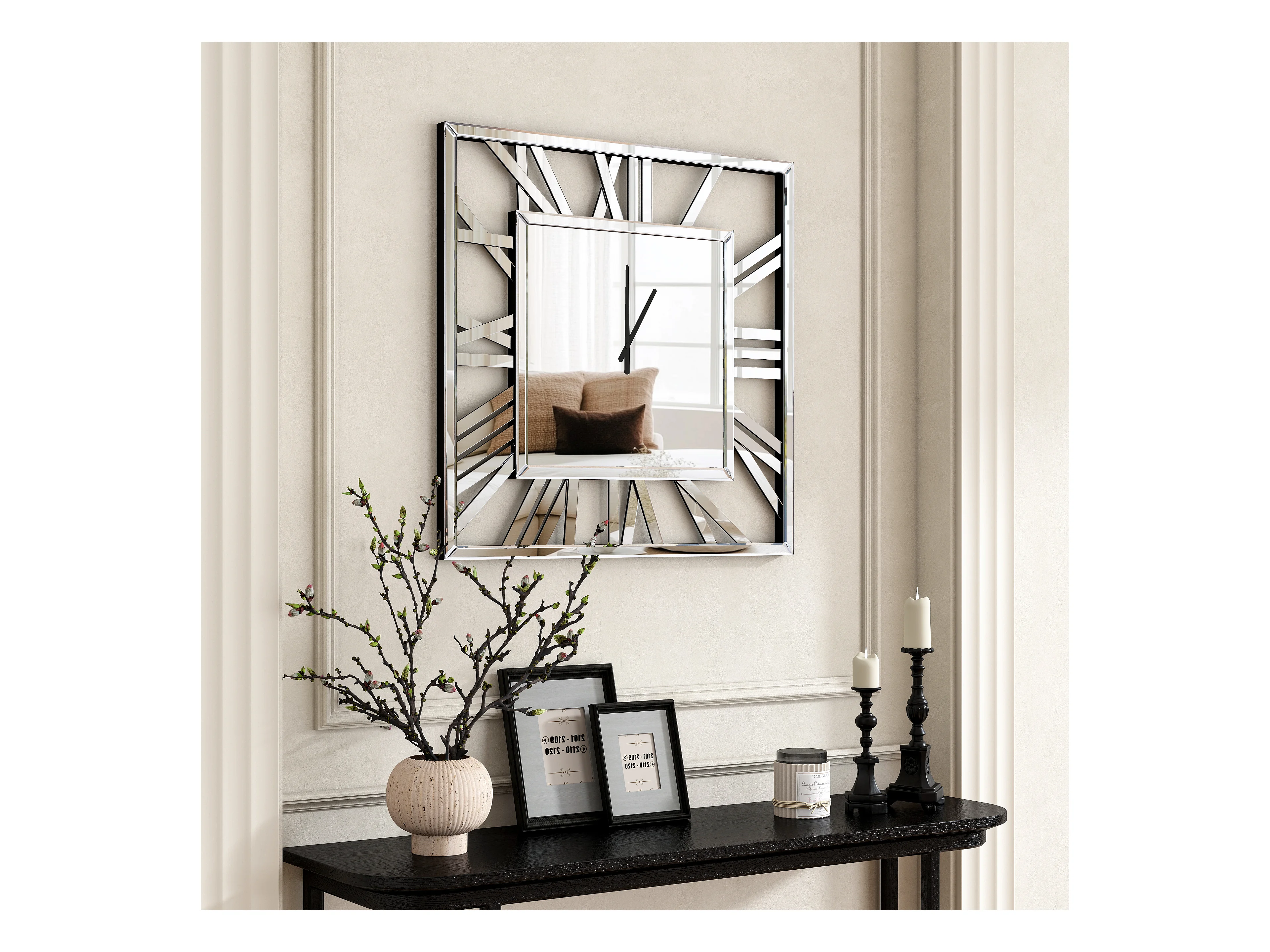 Horloge murale carrée en verre, design moderne et élégant, MDF et verre, argenté (80x3.6x80 cm)