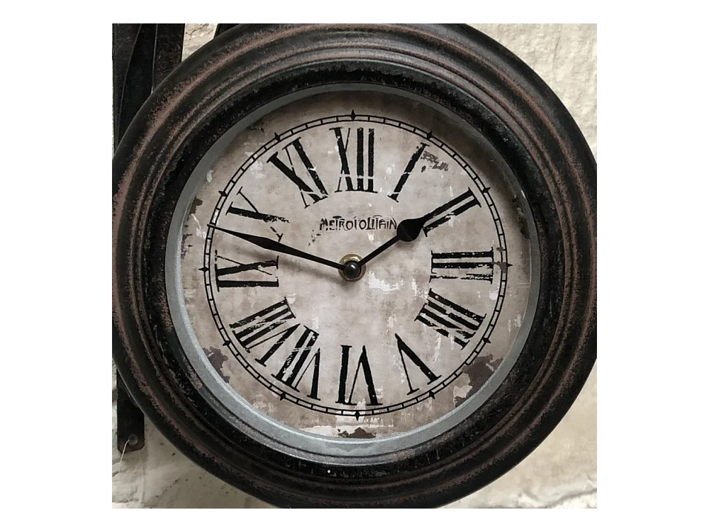 Horloge murale décorative double face gare vintage métal marron 48cm