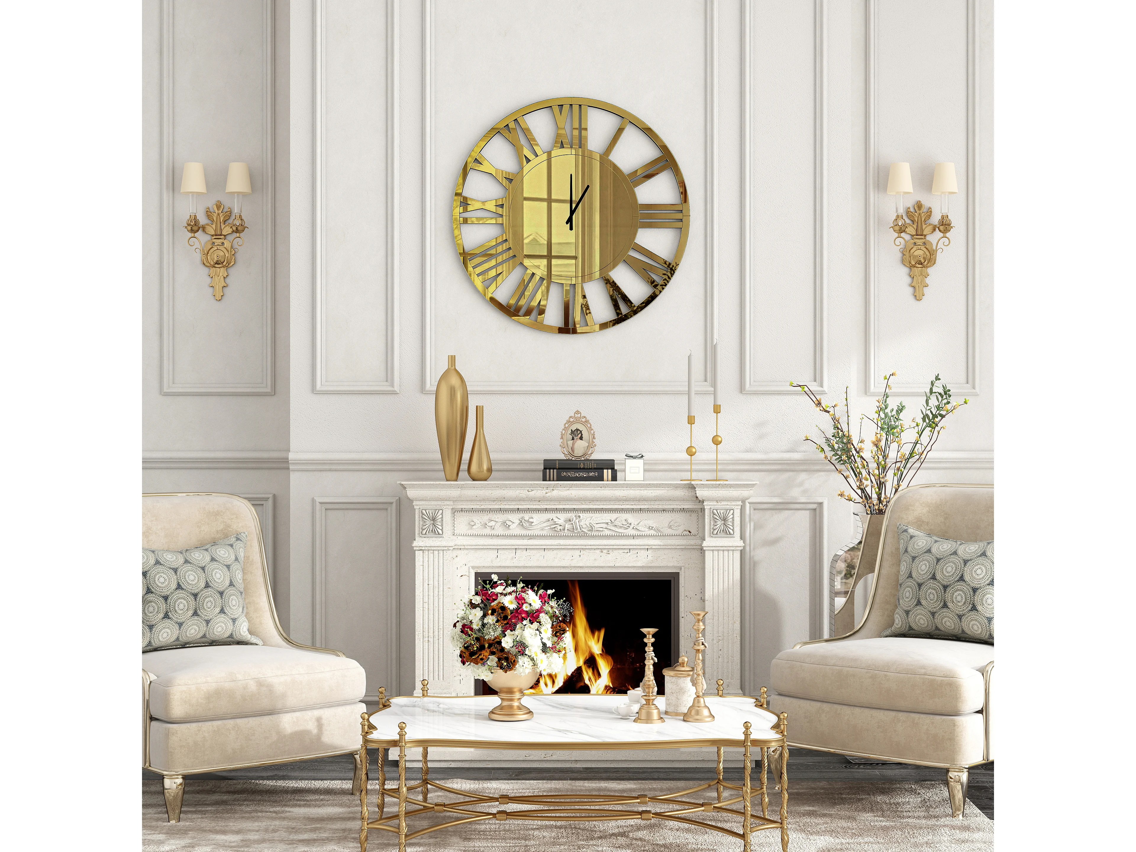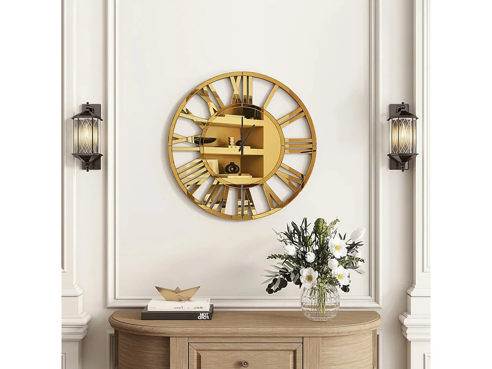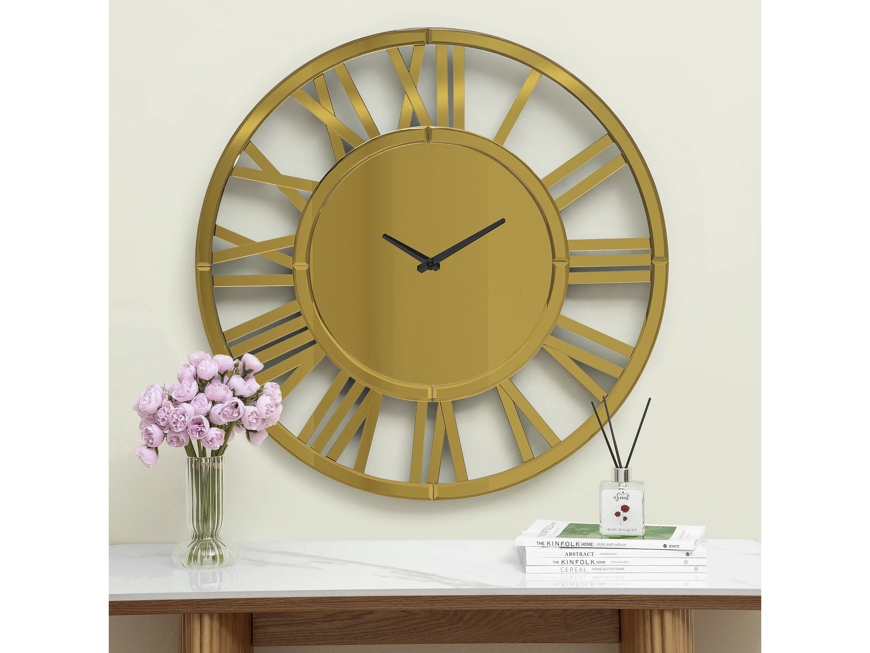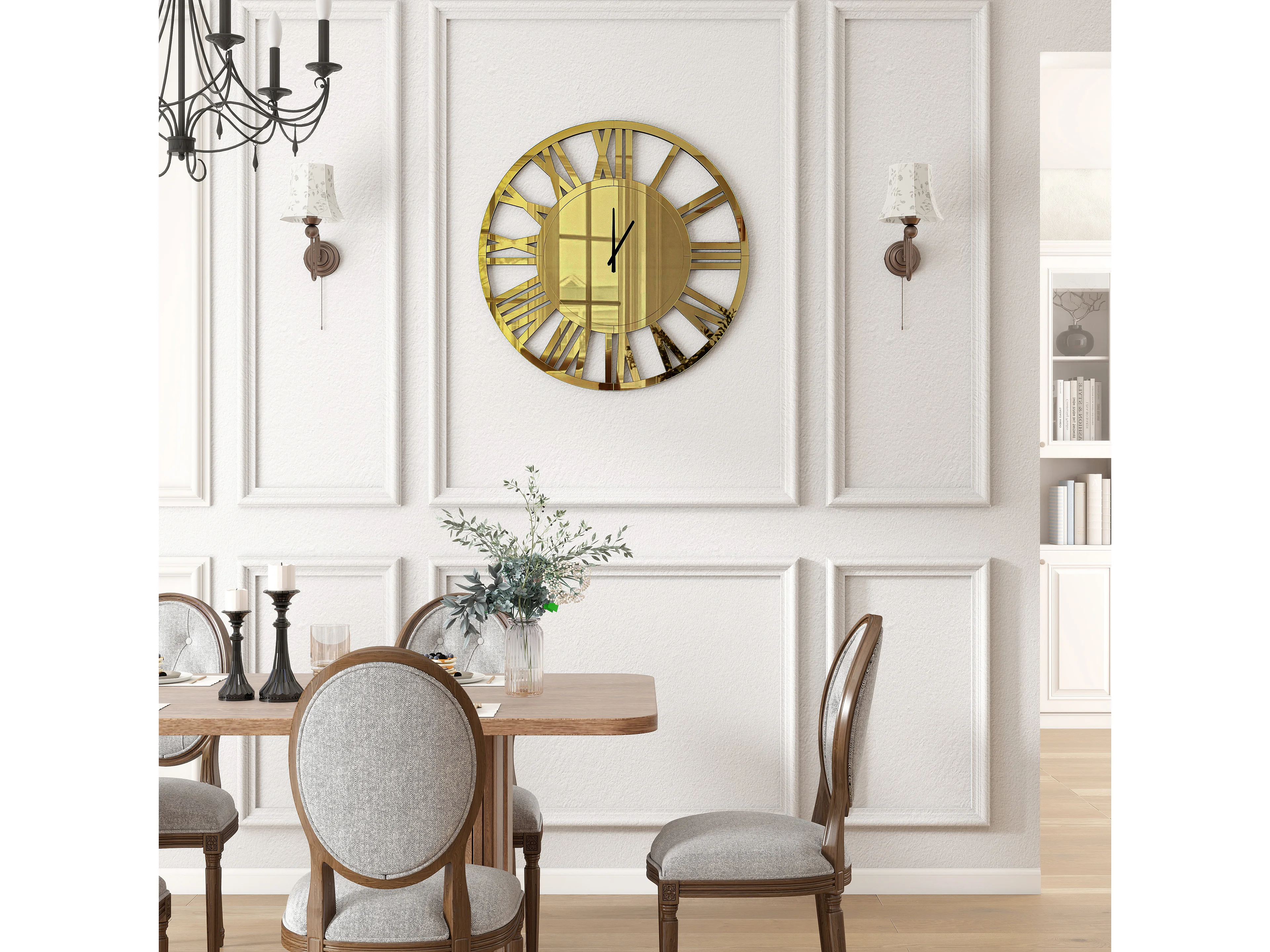 Horloge murale ronde contemporaine en verre, design élégant, MDF et verre, doré (80x3.4x80cm)