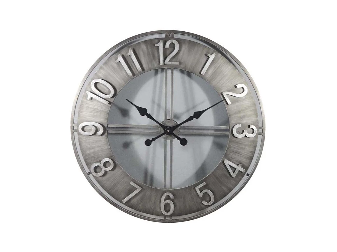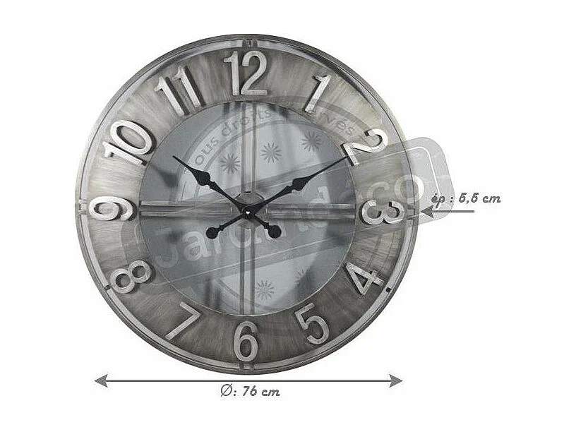 Grande horloge murale décorative vintage salon cuisine métal gris 60cm