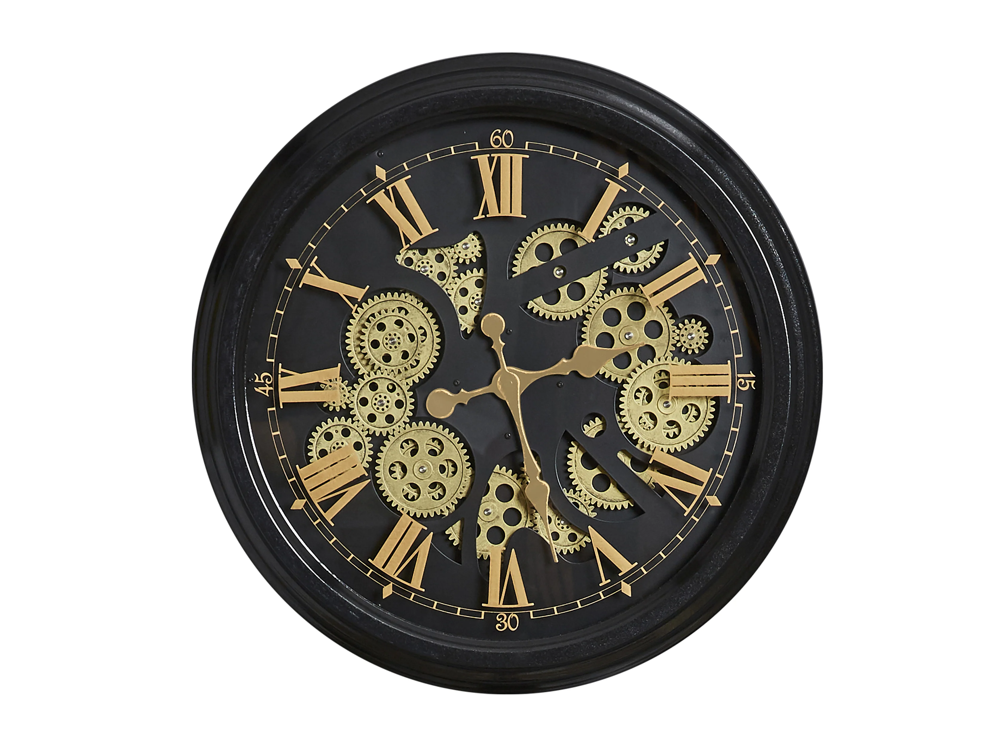 Horloge ronde noire et dorée mécanisme apparent 52x9x52cm