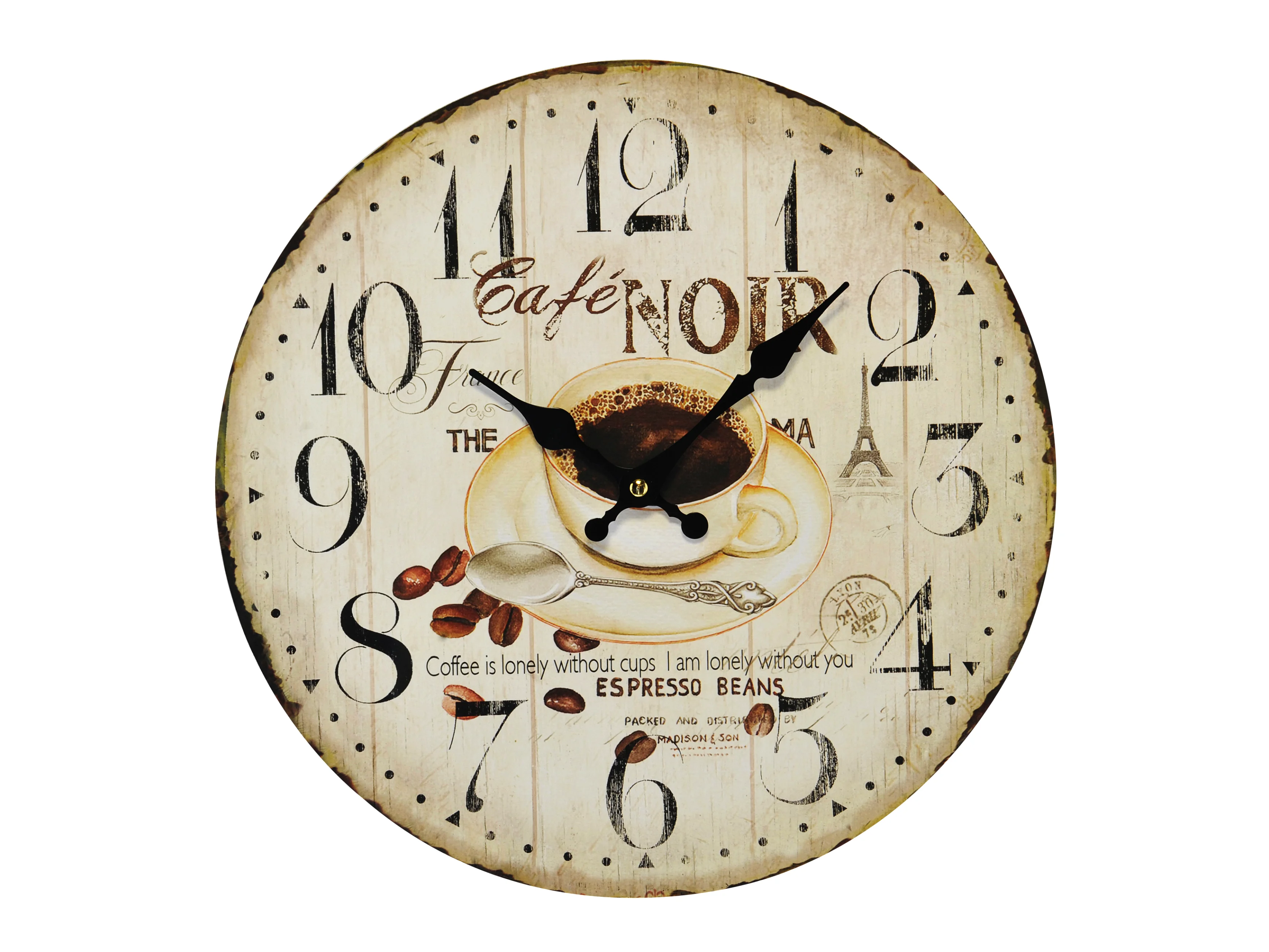 Horloge Cuisine Mdf Rétro Blanc Marron Analogique 33,8x33,8x4