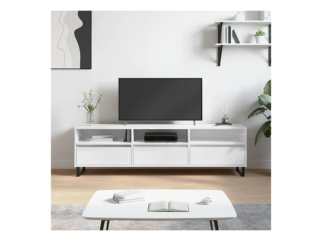Hørning Meuble TV blanc brillant 150x30x44,5 cm bois d'ingénierie
