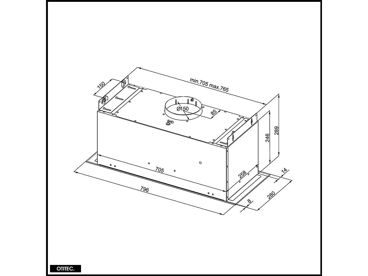 Hotte Casquette Aspirante Silencieuse - 80 cm - 565 m3/h - AGENDERO - Noir