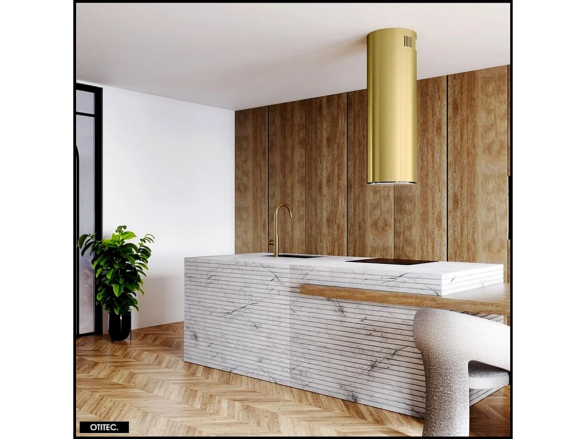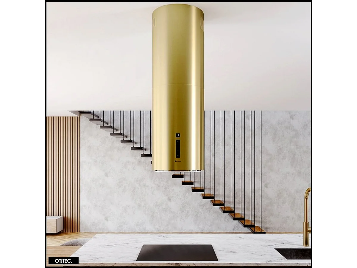 Hotte Îlot Aspirante Silencieuse - 39 cm - 675 m3/h - HEWENO - Doré Mat