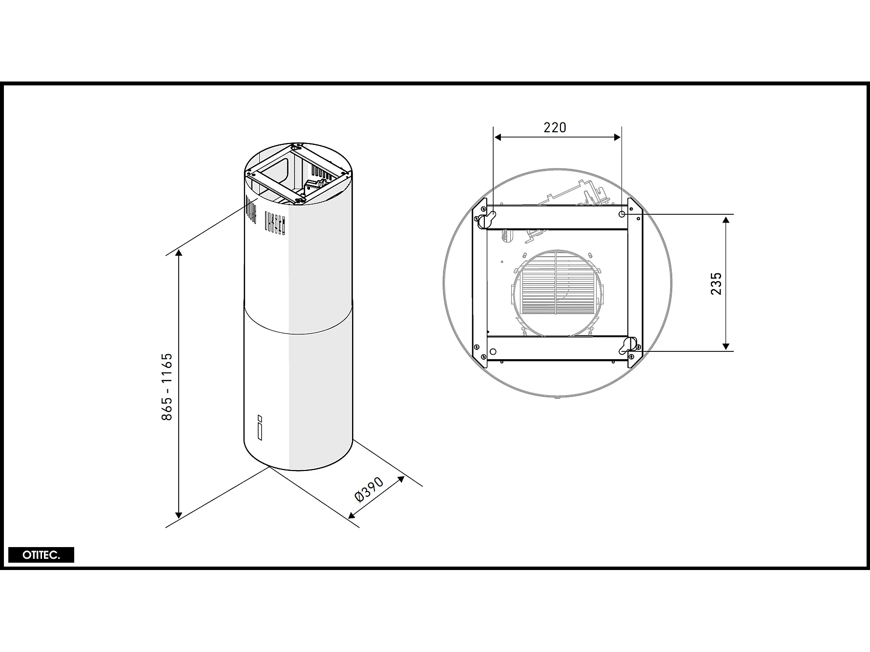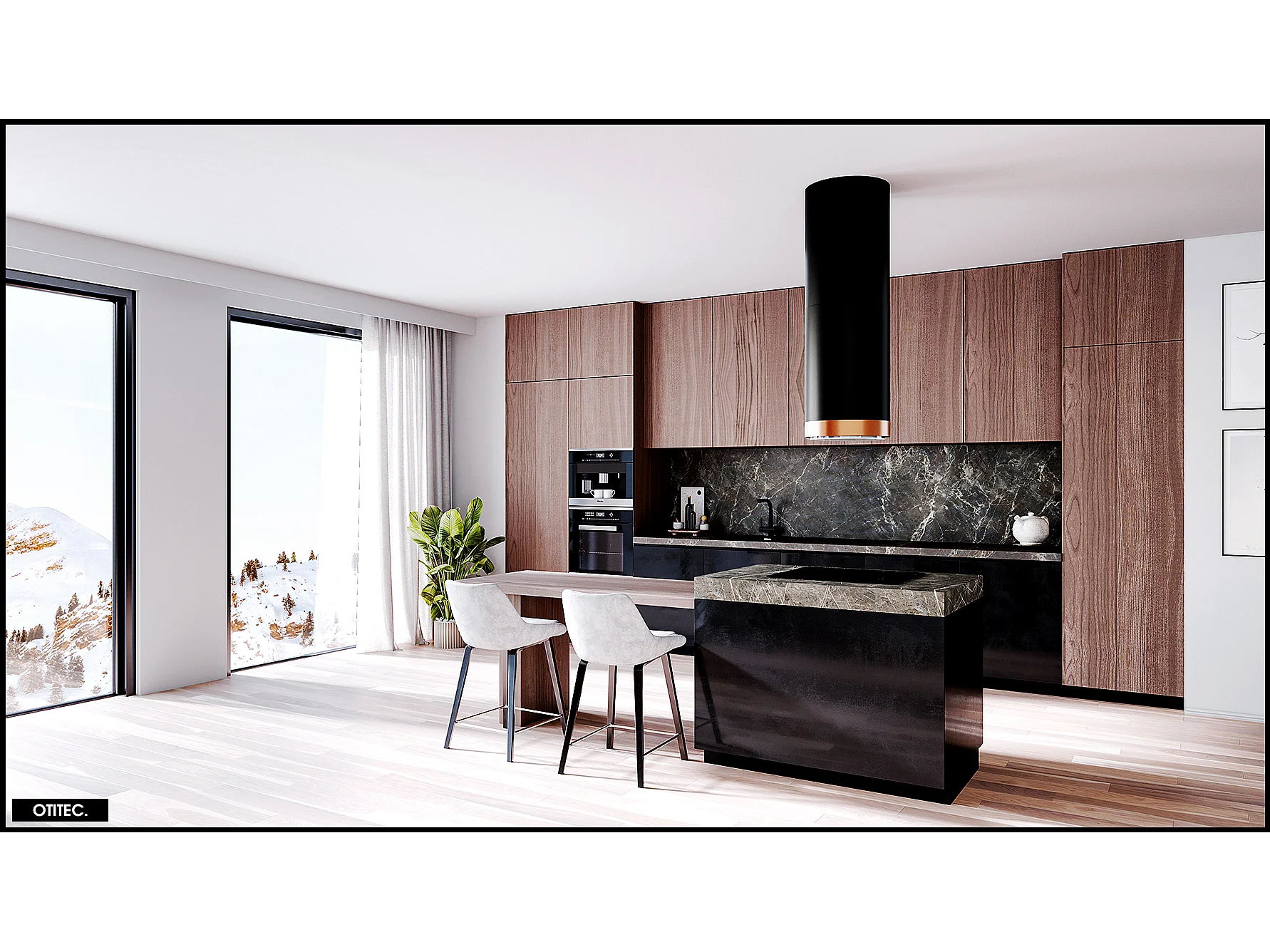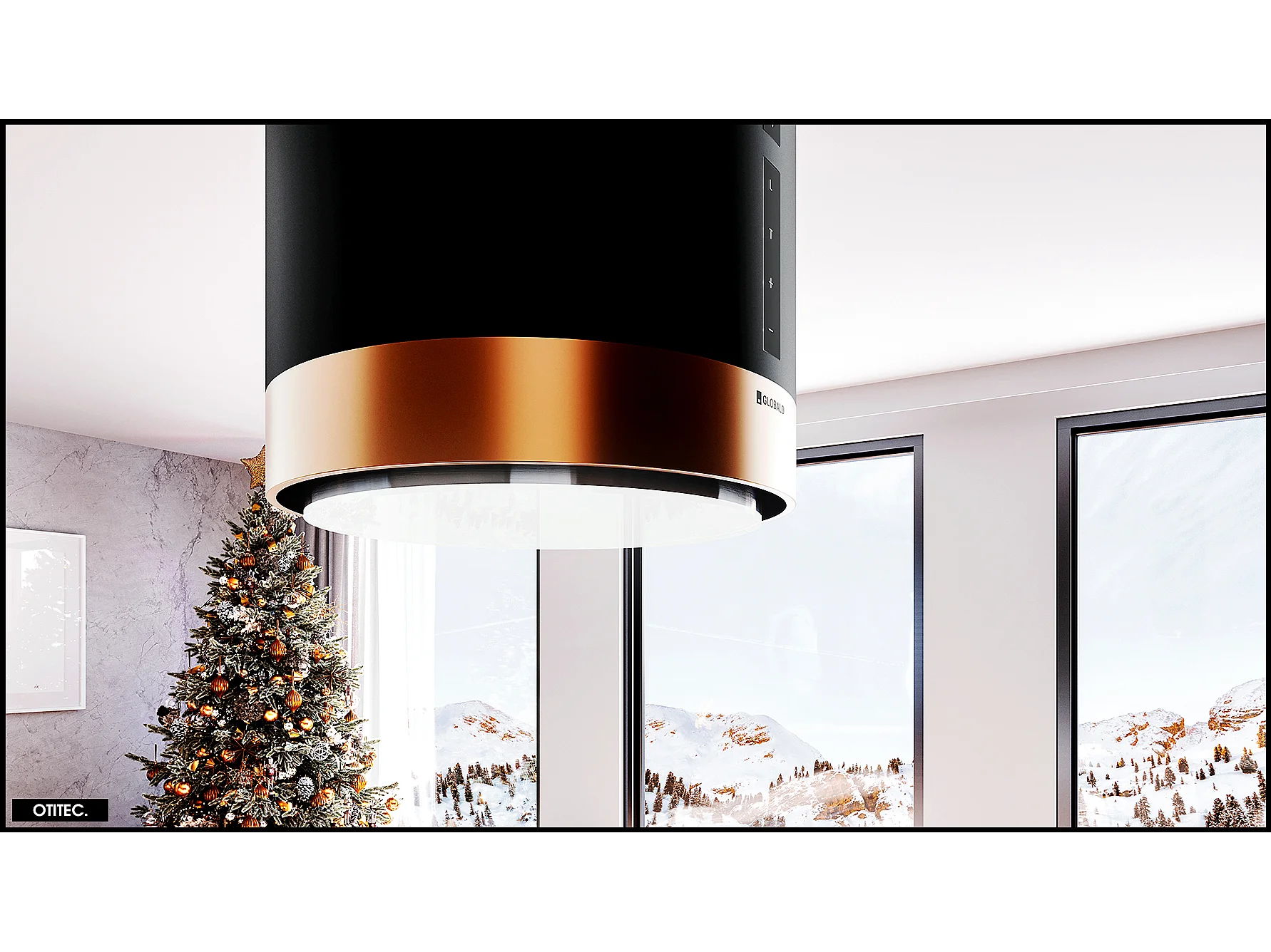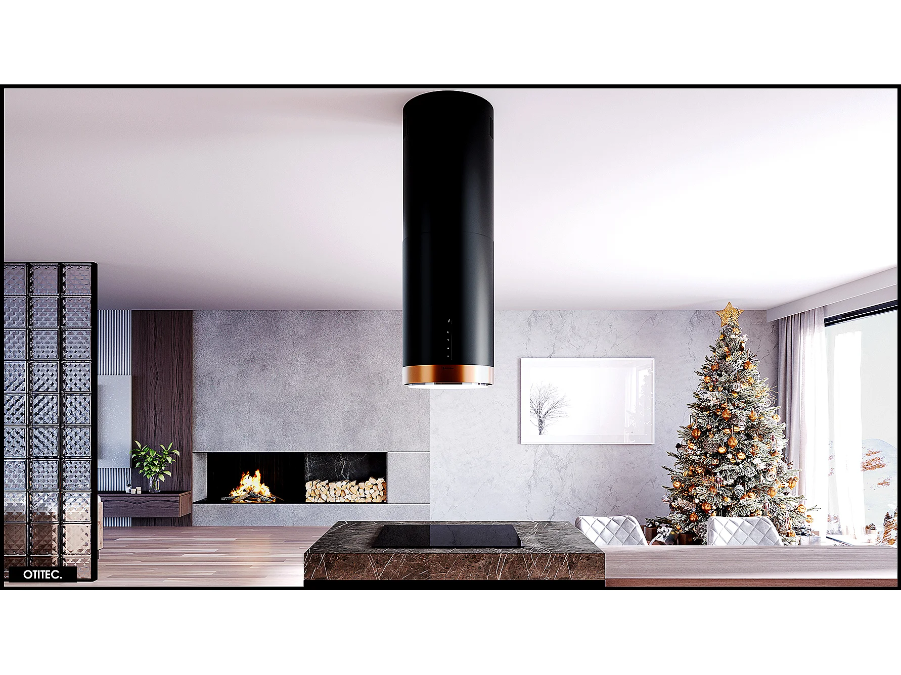 Hotte Îlot Aspirante Silencieuse - 39 cm - 675 m3/h - HEWENO - Noir avec Anneau