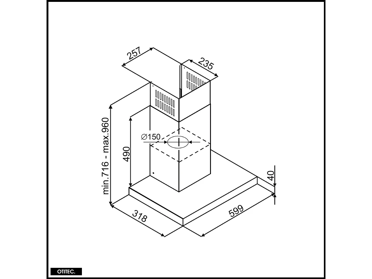 Hotte Murale Aspirante Silencieuse - 60 cm - 555 m3/h - AVENTELIO - Noir