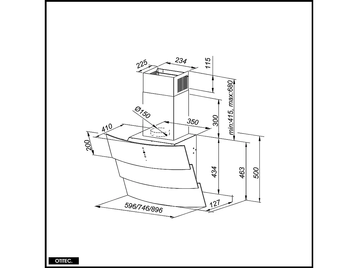 Hotte Murale Aspirante Silencieuse - 75 cm - 720 m3/h - VINTIO - Noir