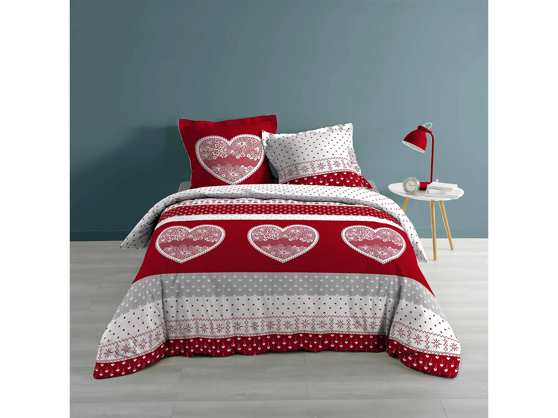 Housse couette + taies 220 x 240 cm Passionement coeur