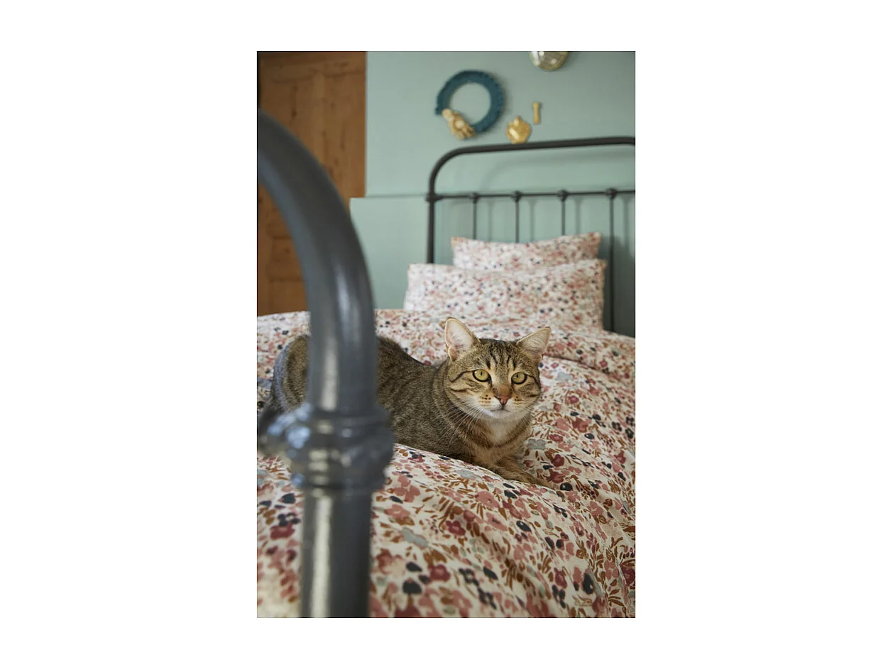 Housse de couette 140 x 200 gaze de coton écru et fleuri - ISABELA 2