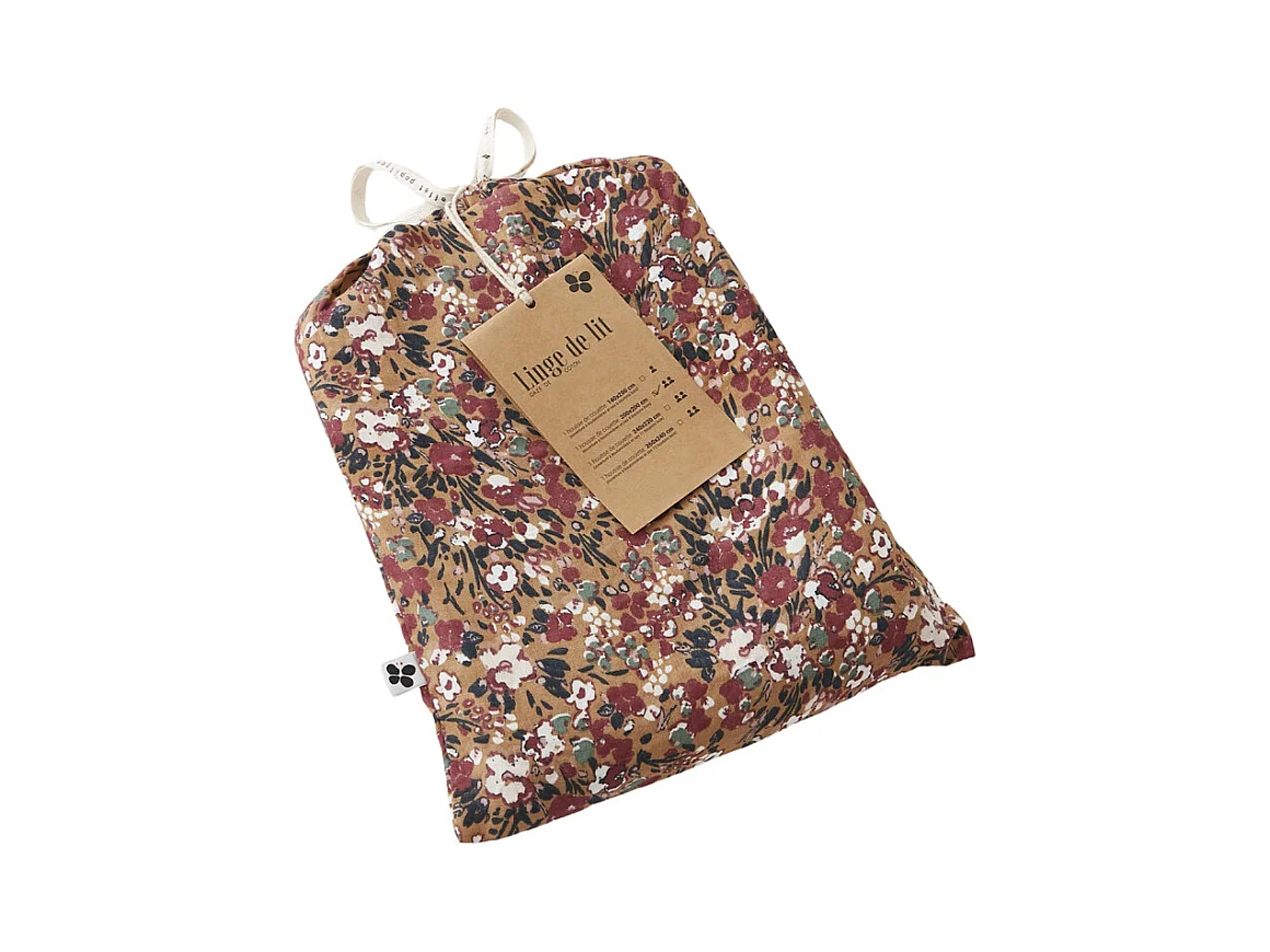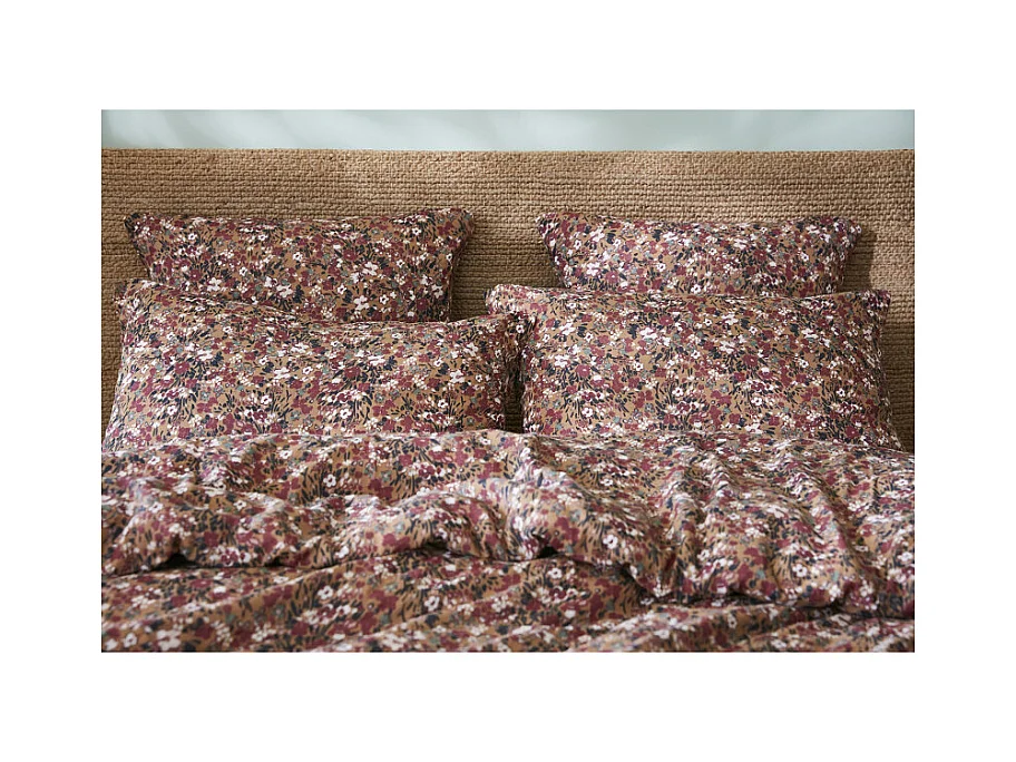 Housse de couette 200 x 200 gaze de coton camel et fleuri - ISABELA 1
