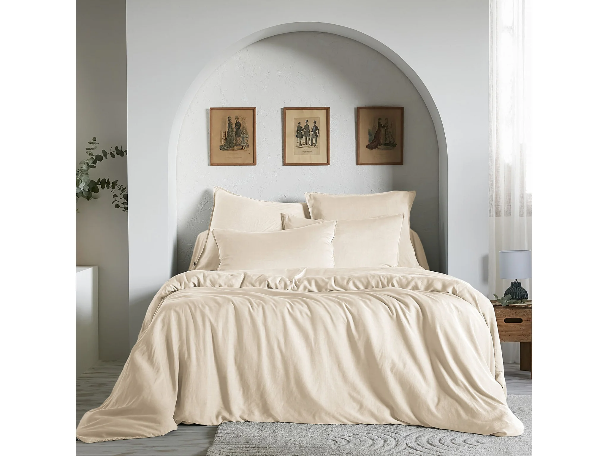 Housse de couette 260x240 lyocell uni pampa Terre de Nuit Lysandre
